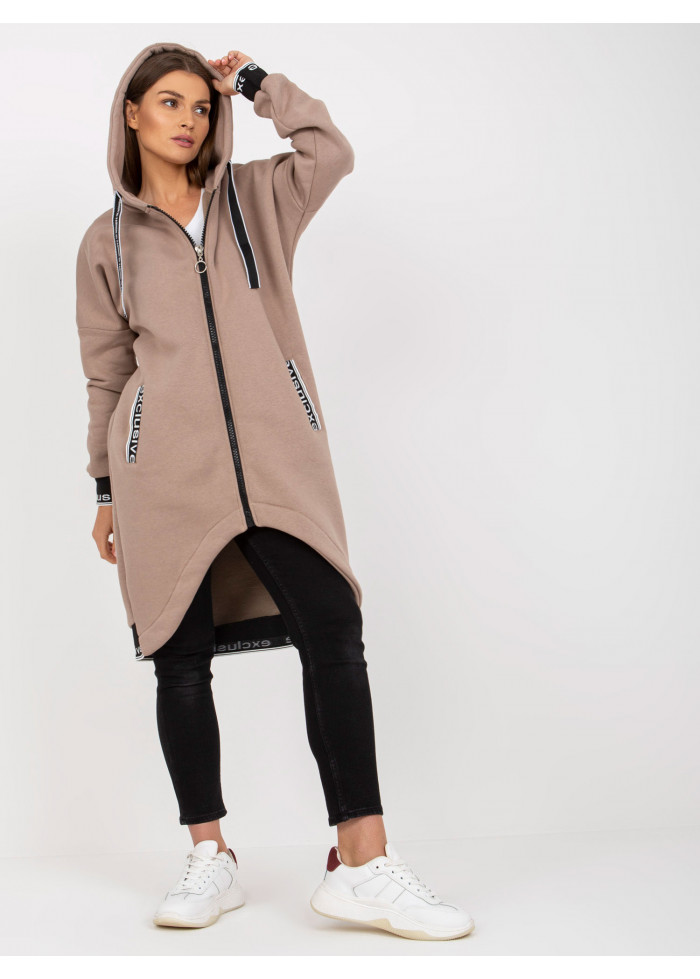 Asymetrická mikina s kapucňou, ozdobné šnúrky na kapucni, zapínanie na zips, 2 vrecká, lémy na konci rukávov, kontrastné prvky, spôsob prania: pranie v práčke na 30°c, materiál: 90% bavlna, 10% elastan, modelka má na sebe veľkosť s/m. miery modelky: výška 168 cm, prsia 82 cm, pás 62 cm, boky 93 cm., rozmer produktu meraného na plocho, vo veľkosti s/m:, šírka pod plecami: 66 cm, celková dĺžka: 100 cm, dĺžka rukávov: 60 cm.