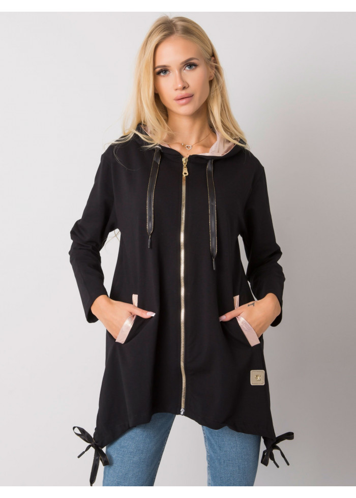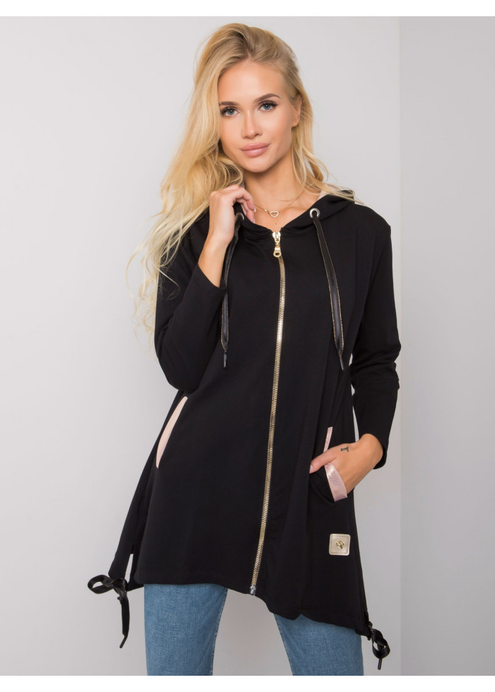Asymetrická mikina s kapucňou, ozdobné šnúrky na kapucni, oversize strih, zapínanie na zips, podšívka kapucne v kontrastnej farbe, šnúrka v spodnej časti, lemy vreciek v kontrastnej farbe, spôsob prania: pranie v práčke na 30°c, materiál: 90% bavlna, 10% elastan, modelka má na sebe veľkosť s/m, miery modelky: výška: 176 cm, prsia: 86 cm, pás: 60 cm, boky: 88 cm, rozmer produktu meraného na plocho, vo veľkosti s/m:, šírka pod plecami: 50 cm, celková dĺžka: 74 cm, dĺžka rukávov: 60 cm.