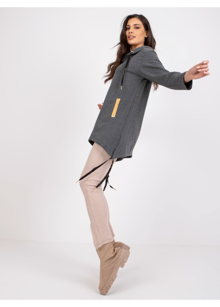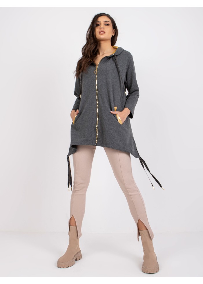 Asymetrická mikina s kapucňou, ozdobné šnúrky na kapucni, oversize strih, zapínanie na zips, podšívka kapucne v kontrastnej farbe, šnúrka v spodnej časti, lemy vreciek v kontrastnej farbe, spôsob prania: pranie v práčke na 30°c, materiál: 90% bavlna, 10% elastan, modelka má na sebe veľkosť s/m, miery modelky: výška: 176 cm, prsia: 86 cm, pás: 60 cm, boky: 88 cm, rozmer produktu meraného na plocho, vo veľkosti s/m:, šírka pod plecami: 50 cm, celková dĺžka: 74 cm, dĺžka rukávov: 60 cm.