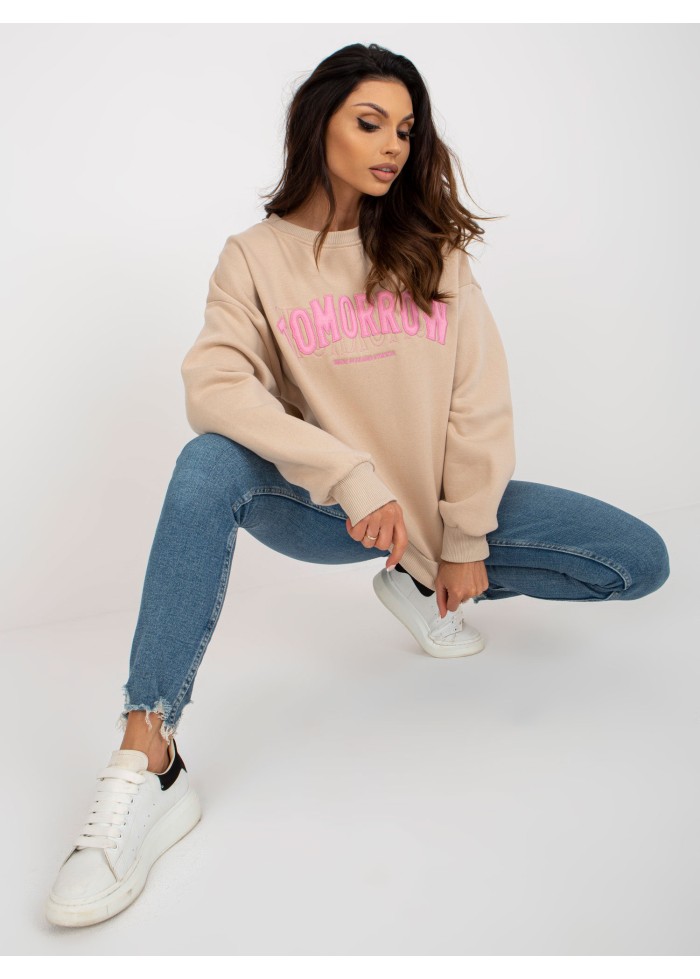 Basic mikina, okrúhly výstrih, lémy na koncoch rukávov a v spodnej časti, ozdobný nápis, univerzálna veľkosť, miery modelky: výška: 168 cm, prsia: 89 cm, pás: 60 cm, boky: 91 cm, rozmer produktu meraného na plocho:, šírka pod plecami: 60 cm, dĺžka rukáva: 60 cm, celková dĺžka: 67 cm.