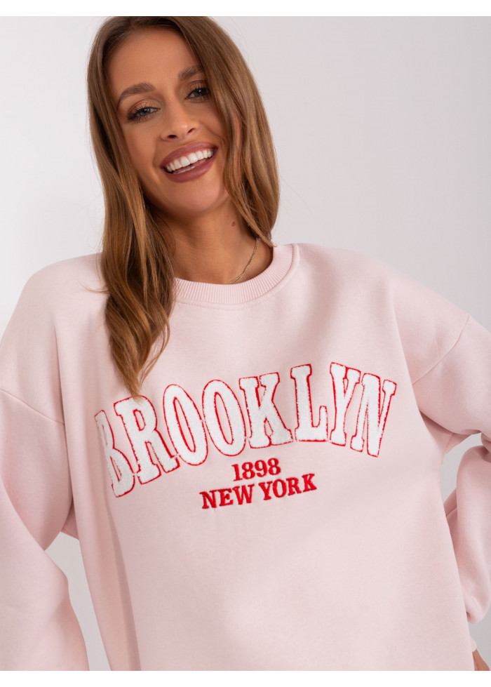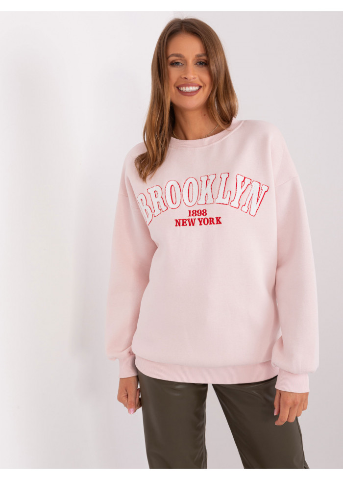 Dámska basic mikina, ozdobný nápis, okrúhly výstrih, lémy na koncoch rukávov a v spodnej časti, univerzálna veľkosť, miery modelky: výška 176 cm, prsia 85 cm, pás 64 cm, boky 92 cm, rozmer produktu meraného na plocho:, šírka pod plecami: 65 cm, dĺžka rukáva: 65 cm, celková dĺžka: 71 cm.