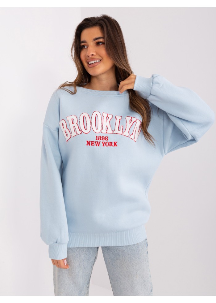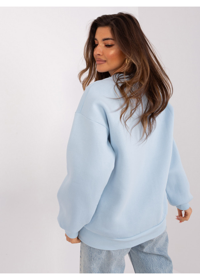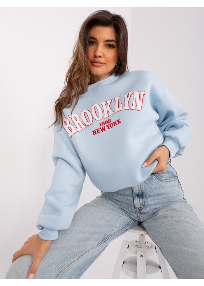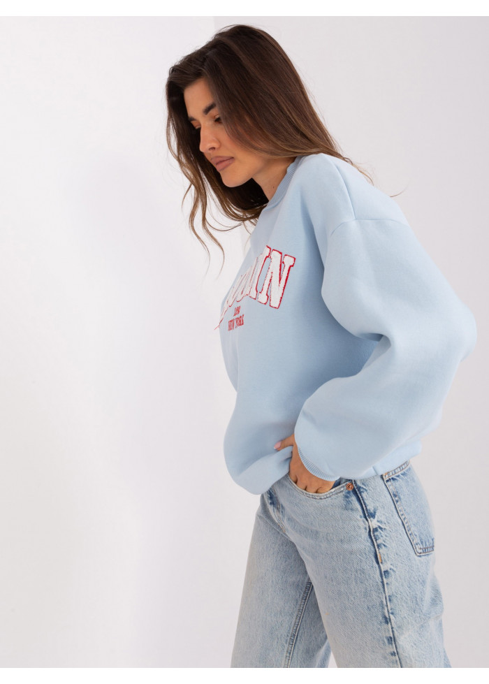 Dámska basic mikina, ozdobný nápis, okrúhly výstrih, lémy na koncoch rukávov a v spodnej časti, univerzálna veľkosť, miery modelky: výška 176 cm, prsia 85 cm, pás 64 cm, boky 92 cm, rozmer produktu meraného na plocho:, šírka pod plecami: 65 cm, dĺžka rukáva: 65 cm, celková dĺžka: 71 cm.