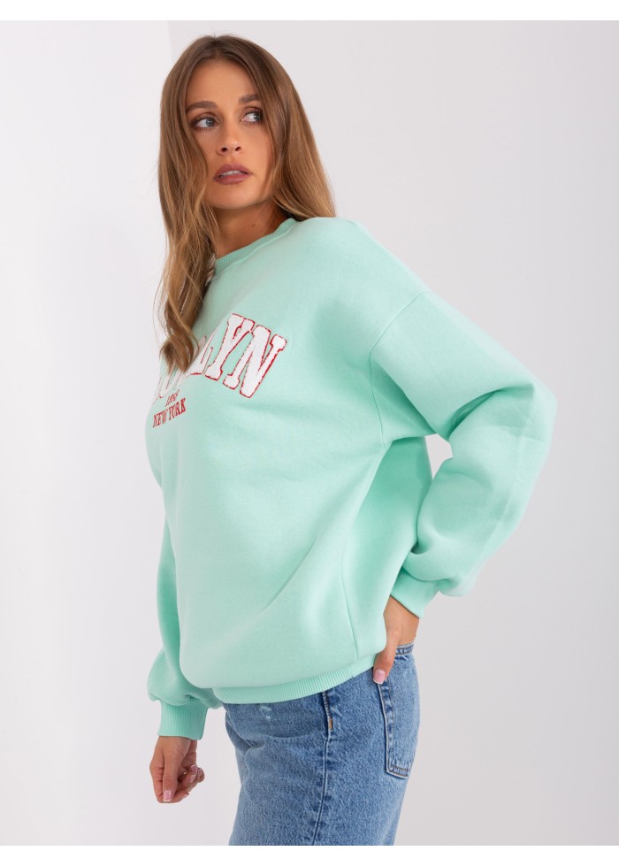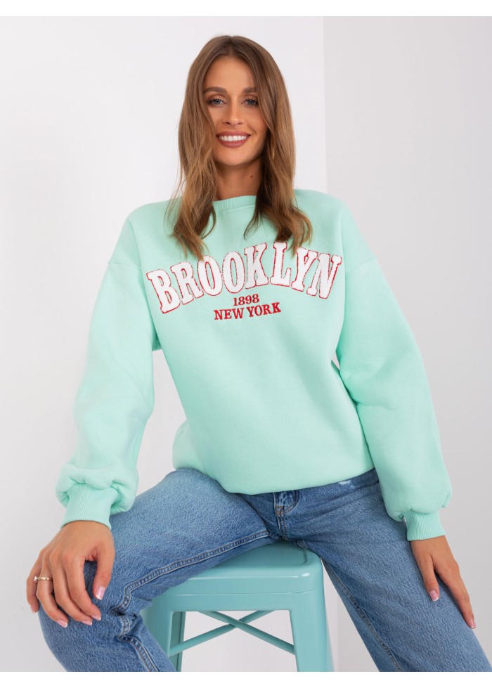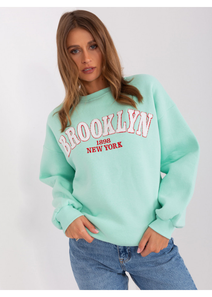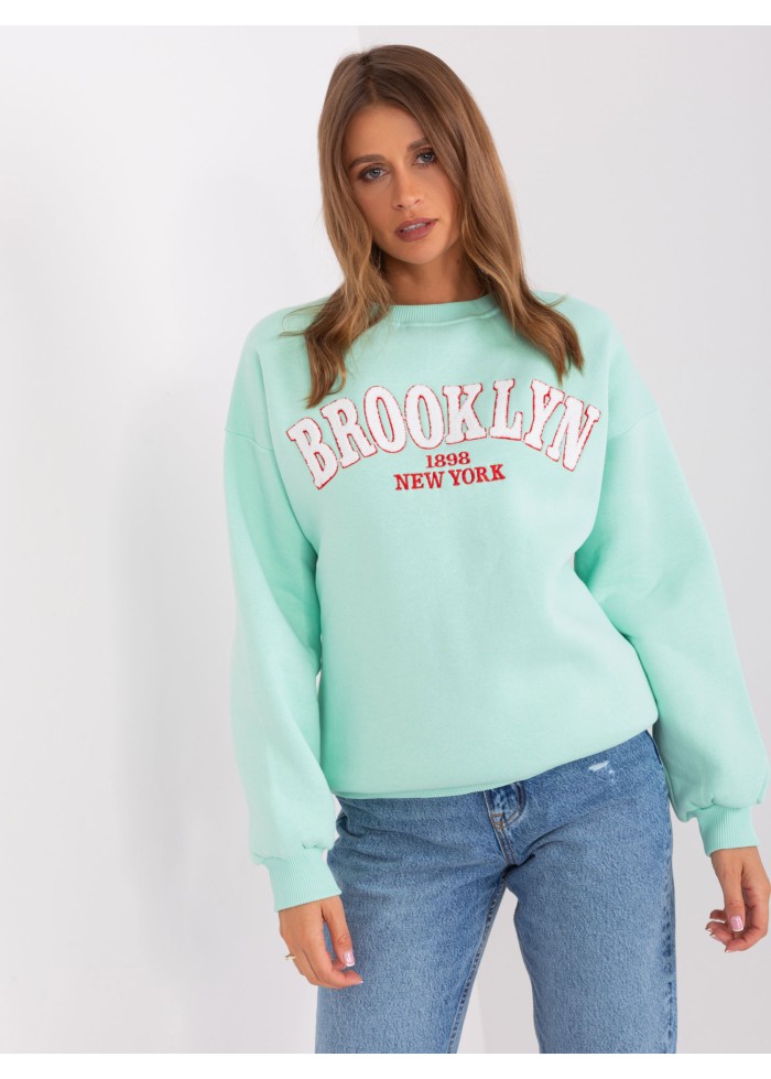 Dámska basic mikina, ozdobný nápis, okrúhly výstrih, lémy na koncoch rukávov a v spodnej časti, univerzálna veľkosť, miery modelky: výška 176 cm, prsia 85 cm, pás 64 cm, boky 92 cm, rozmer produktu meraného na plocho:, šírka pod plecami: 65 cm, dĺžka rukáva: 65 cm, celková dĺžka: 71 cm.