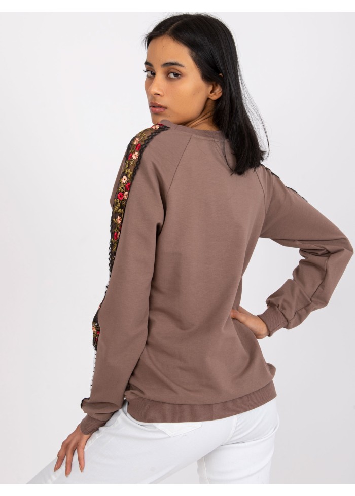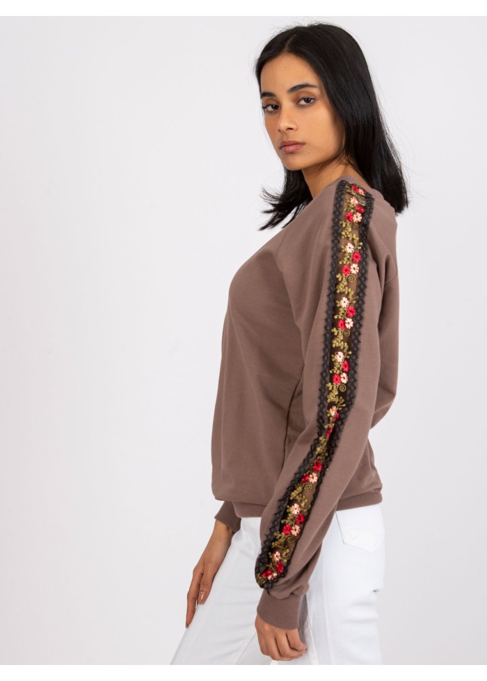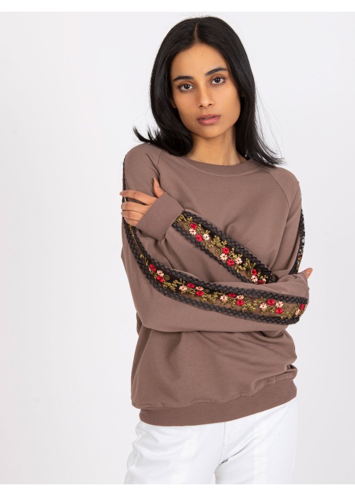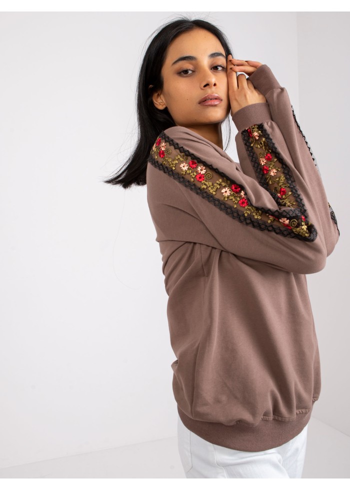 Hnedá basic mikina s výšivkou