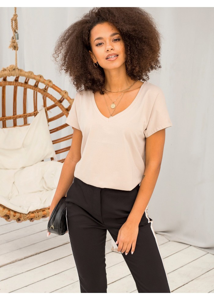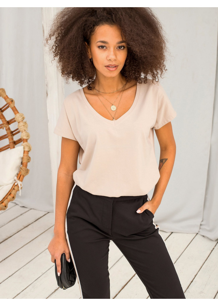 Basic tričko, výstrih do v, krátky rukáv, jednoduchý strih, spôsob prania: pranie v práčke na 30°c, materiál: 90% bavlna, 10% elastan, modelka má na sebe veľkosť xs, miery modelky: výška: 168 cm, prsia: 82 cm, pás: 62 cm, boky: 93 cm, rozmer produktu meraného na plocho, vo veľkosti xs:, šírka pod plecami: 51 cm, celková dĺžka: 62 cm.