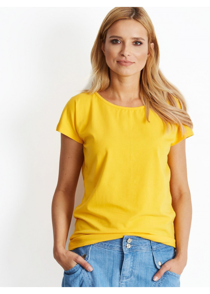 Basic tričko, okrúhly výstrih, krátky rukáv, materiál: 90% bavlna, 10% elastan, spôsob prania: pranie v práčke na 30°c, modelka má na sebe veľkosť s.