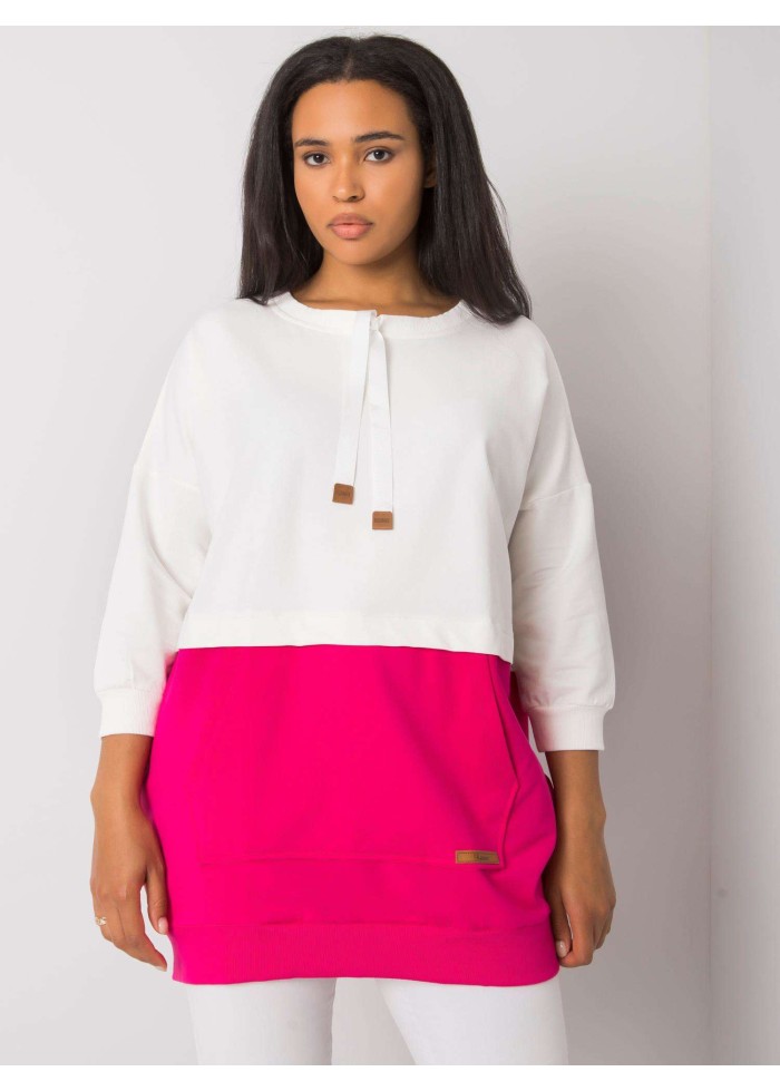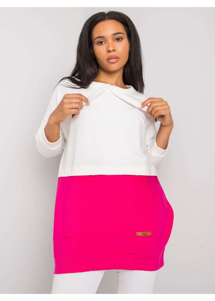 Dámska bavlnená tunika, tunika je prestrihnutá v páse, kontrastný spodný diel, okrúhly výstrih so šnúrkami, šnúrky ukončené koženou aplikáciou, 7/8 rukávy, klokanie vrecko s koženou aplikáciou, lémy na koncoch rukávov a v spodnej časti, univerzálna veľkosť, materiál: 90% bavlna, 10% elastan, spôsob prania: pranie v práčke na 30°c, modelka má oblečenú jednu veľkosť. miery modelky: výška 174 cm, prsia 108 cm, pás 87 cm, boky 116 cm., rozmery mikiny sú merané naplocho: šírka v podpazuší - 66 cm, celková dĺžka - 80 cm, dĺžka rukáva - 46 cm..