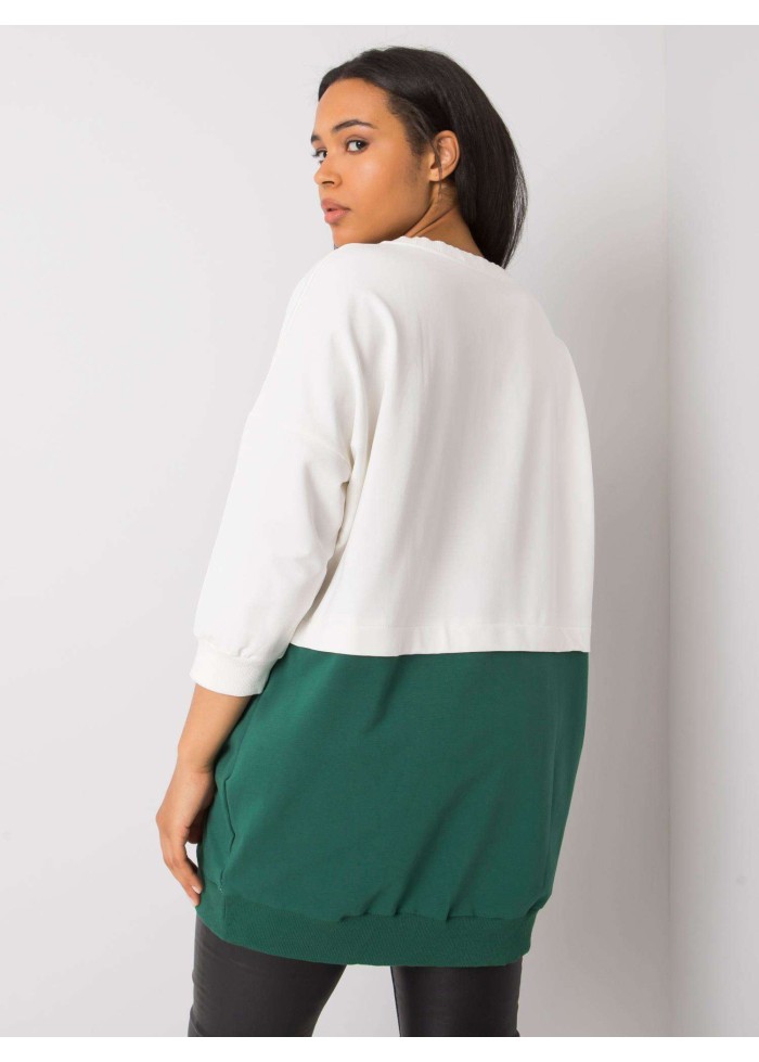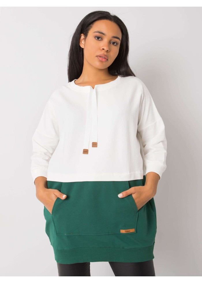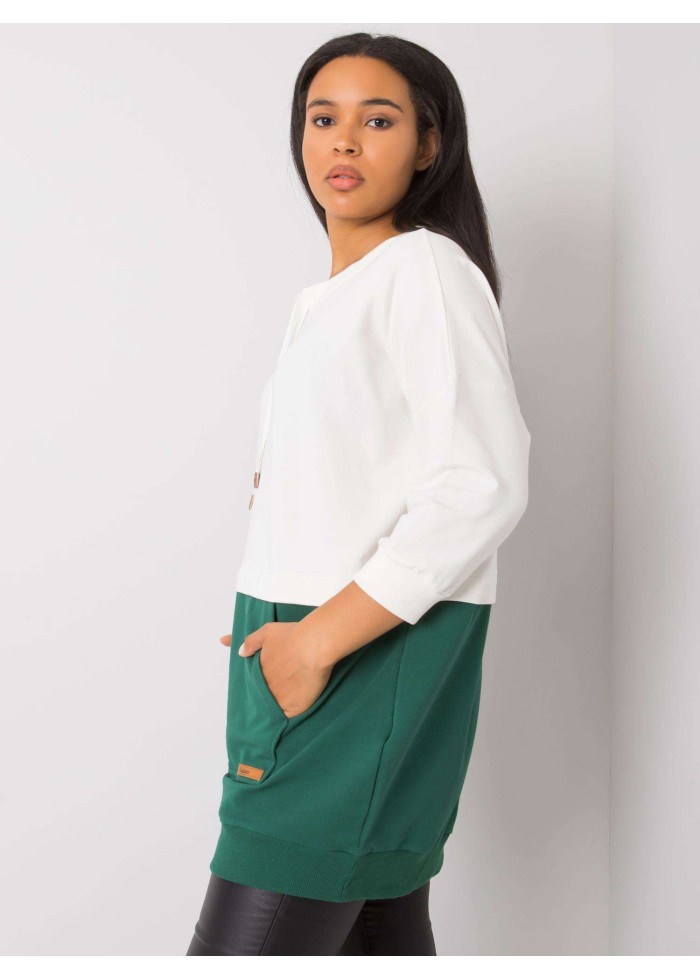 Dámska bavlnená tunika, tunika je prestrihnutá v páse, kontrastný spodný diel, okrúhly výstrih so šnúrkami, šnúrky ukončené koženou aplikáciou, 7/8 rukávy, klokanie vrecko s koženou aplikáciou, lémy na koncoch rukávov a v spodnej časti, univerzálna veľkosť, materiál: 90% bavlna, 10% elastan, spôsob prania: pranie v práčke na 30°c, modelka má oblečenú jednu veľkosť. miery modelky: výška 174 cm, prsia 108 cm, pás 87 cm, boky 116 cm., rozmery mikiny sú merané naplocho: šírka v podpazuší - 66 cm, celková dĺžka - 80 cm, dĺžka rukáva - 46 cm..