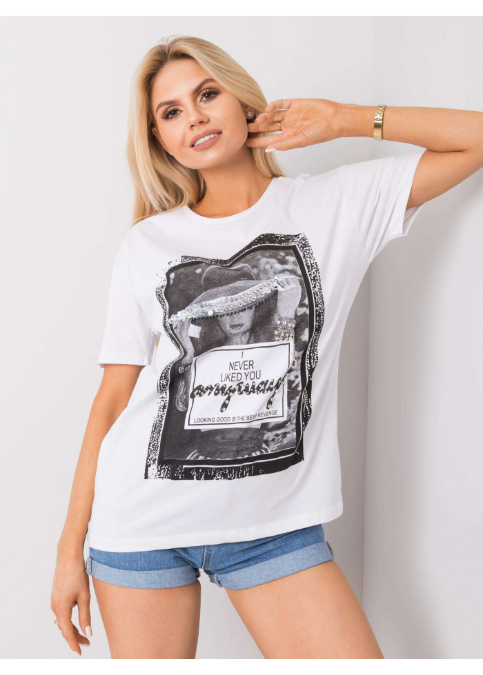 Dámske bavlnené tričko, okrúhly výstrih, krátke rukávy, potlač s aplikáciou, pohodlný strih, materiál: 100% bavlna, spôsob prania: pranie v práčke na 30°c, modelka má na sebe veľkosť s. rozmery modelky: výška 175 cm, prsia 85 cm, pás 63 cm, boky 95 cm., rozmery trička vo veľkosti s merané naplocho: šírka v podpazuší - 47 cm, celková dĺžka - 66 cm.