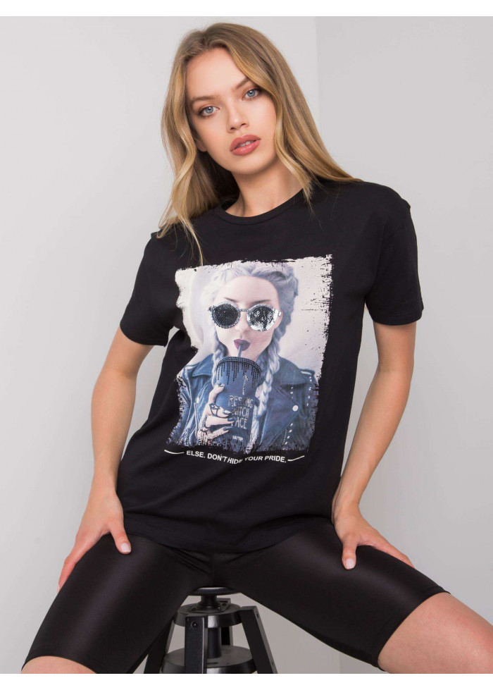 Dámske bavlnené tričko, okrúhly výstrih, krátke rukávy, farebná potlač, materiál: 100% bavlna, spôsob prania: pranie v práčke na 30°c, modelka má na sebe veľkosť s. rozmery modelky: výška 174 cm, prsia 82 cm, pás 62 cm, boky 89 cm., rozmery trička vo veľkosti s merané naplocho: šírka v podpazuší - 49 cm, celková dĺžka - 67 cm.