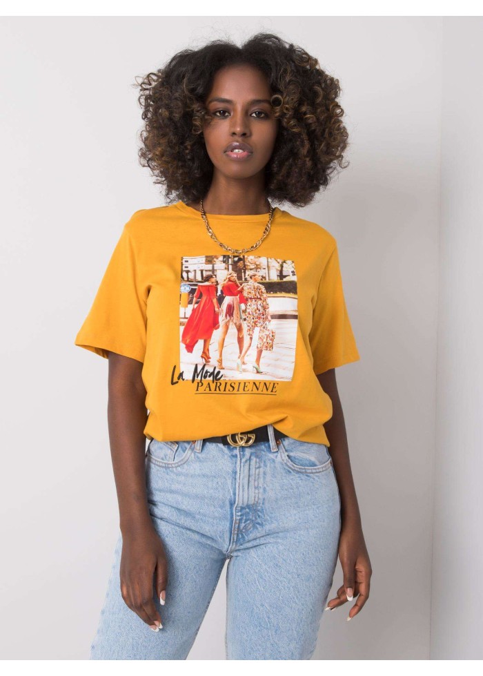 Dámske bavlnené tričko, okrúhly výstrih, krátke rukávy, farebná potlač, materiál: 100% bavlna, spôsob prania: ručné pranie, modelka má na sebe veľkosť s. rozmery modelky: výška 168 cm, prsia 82 cm, pás 62 cm, boky 93 cm., rozmery trička vo veľkosti s merané naplocho: šírka v podpazuší - 47 cm, celková dĺžka - 63 cm.