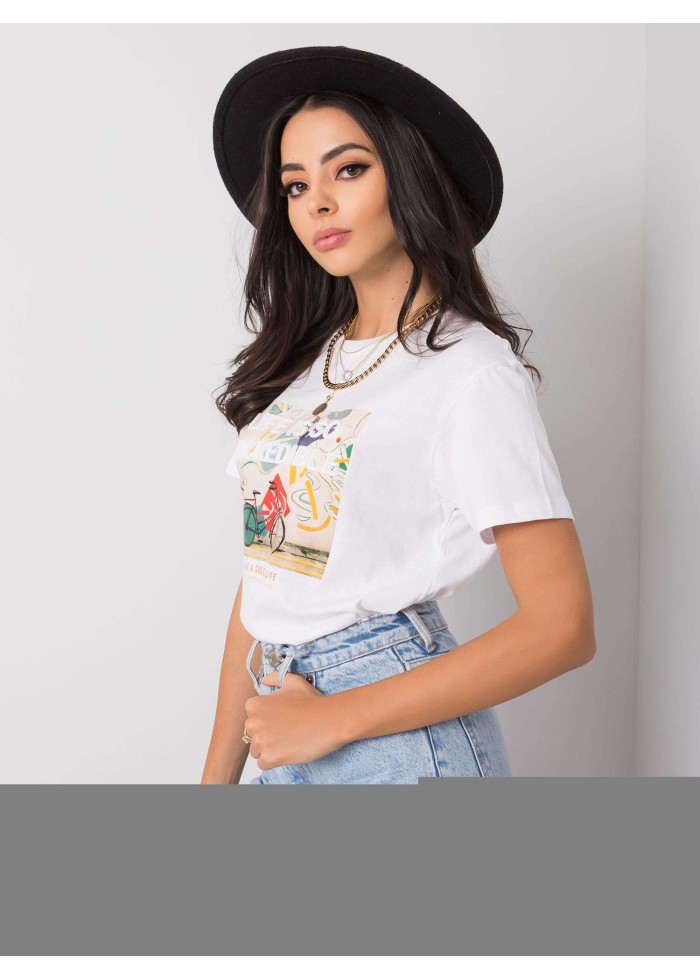 Dámske bavlnené tričko, okrúhly výstrih, krátke rukávy, farebná potlač, materiál: 100% bavlna, spôsob prania: ručné pranie, modelka má na sebe veľkosť s. rozmery modelky: výška 175 cm, prsia 84 cm, pás 61 cm, boky 91 cm., rozmery trička vo veľkosti s merané naplocho: šírka v podpazuší - 48 cm, celková dĺžka - 62 cm.