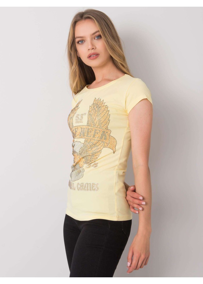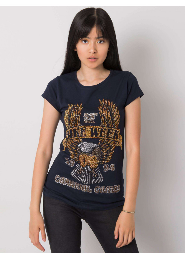 Dámske bavlnené tričko, krátke rukávy, okrúhly výstrih, potlač na prednej časti, materiál: 90% bavlna, 10% elastan, spôsob prania: pranie v práčke na 30°c, modelka má na sebe veľkosť s. rozmery modelky: výška 176,5 cm, prsia 83 cm, pás 55 cm, boky 88 cm., rozmery trička vo veľkosti s merané naplocho: šírka pod pazuchami - 42 cm, celková dĺžka - 66 cm.
