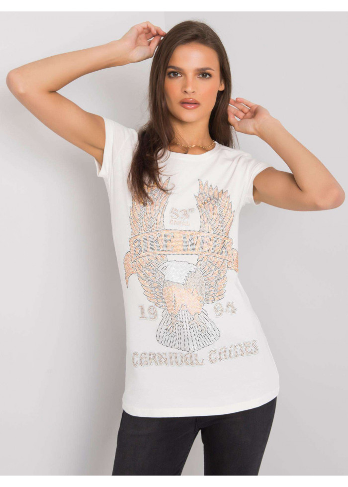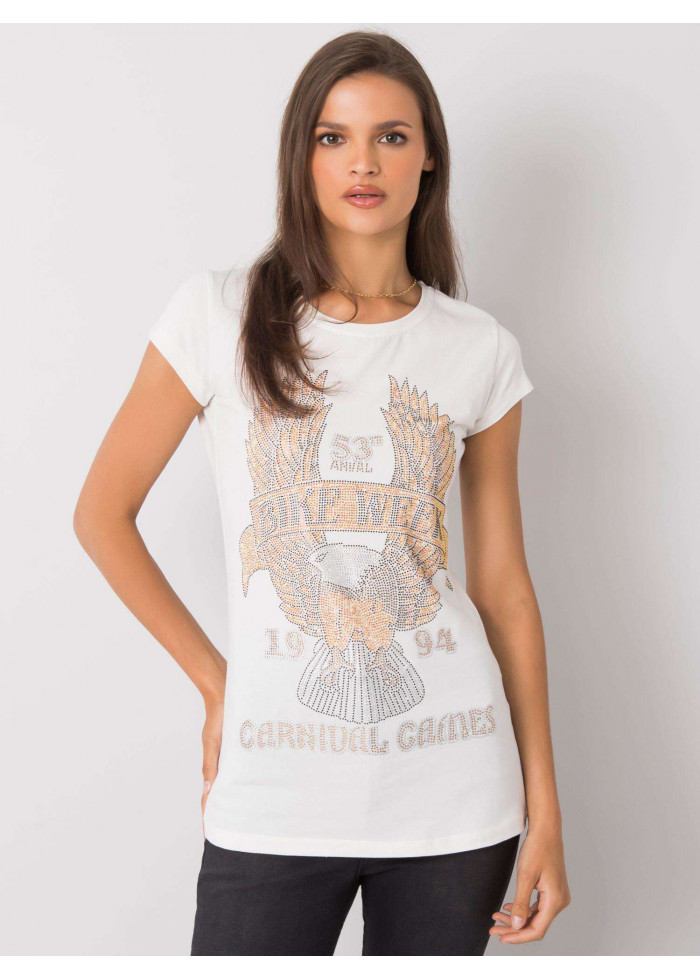 Dámske bavlnené tričko, krátke rukávy, okrúhly výstrih, potlač na prednej časti, materiál: 90% bavlna, 10% elastan, spôsob prania: pranie v práčke na 30°c, modelka má na sebe veľkosť s. rozmery modelky: výška 176,5 cm, prsia 83 cm, pás 55 cm, boky 88 cm., rozmery trička vo veľkosti s merané naplocho: šírka pod pazuchami - 42 cm, celková dĺžka - 66 cm.
