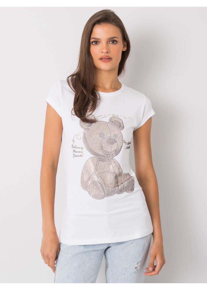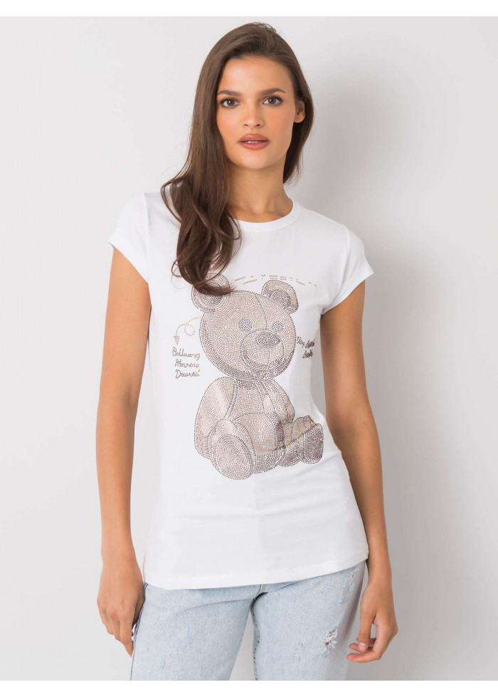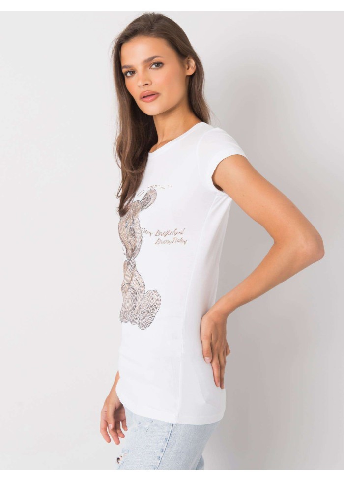 Dámske bavlnené tričko, krátke rukávy, okrúhly výstrih, potlač s kamienkami, materiál: 90% bavlna, 10% elastan, spôsob prania: pranie v práčke na 30°c, modelka má na sebe veľkosť s. rozmery modelky: výška 176,5 cm, prsia 83 cm, pás 55 cm, boky 88 cm., rozmery trička vo veľkosti s merané naplocho: šírka pod pazuchami - 42 cm, celková dĺžka - 65 cm.