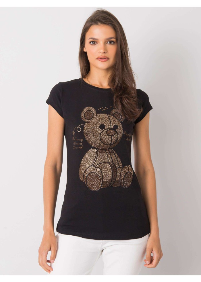 Dámske bavlnené tričko, krátke rukávy, okrúhly výstrih, potlač s kamienkami, materiál: 90% bavlna, 10% elastan, spôsob prania: pranie v práčke na 30°c, modelka má na sebe veľkosť s. rozmery modelky: výška 176,5 cm, prsia 83 cm, pás 55 cm, boky 88 cm., rozmery trička vo veľkosti s merané naplocho: šírka pod pazuchami - 42 cm, celková dĺžka - 65 cm.