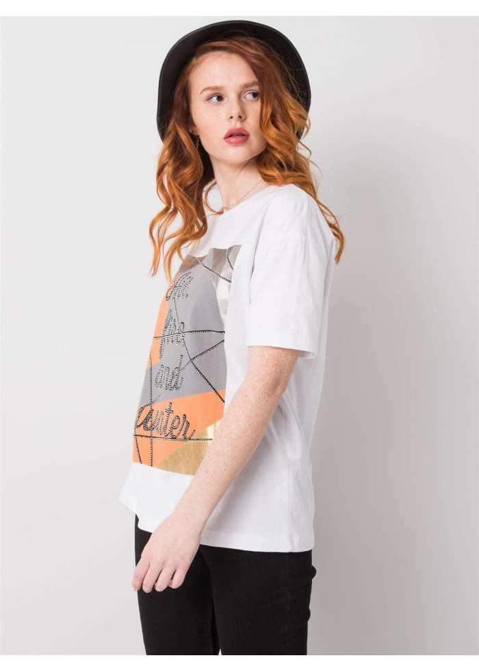 Dámske bavlnené tričko, krátke rukávy, okrúhly výstrih, pohodlný strih, potlač na prednej časti, materiál: 100% bavlna, spôsob prania: pranie v práčke na 30°c, modelka má na sebe veľkosť s. rozmery modelky: výška 165 cm, prsia 83 cm, pás 64 cm, boky 90 cm., rozmery trička vo veľkosti s merané naplocho: šírka pod pazuchami - 49 cm, celková dĺžka - 61 cm.