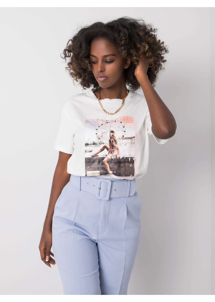 Dámske bavlnené tričko, krátke rukávy, okrúhly výstrih, pohodlný strih, potlač na prednej časti, materiál: 100% bavlna, spôsob prania: ručné pranie, modelka má na sebe veľkosť s. rozmery modelky: výška 175 cm, prsia 85 cm, pás 65 cm, boky 89 cm., rozmery trička vo veľkosti s merané naplocho: šírka pod pazuchami - 45 cm, celková dĺžka - 61 cm.