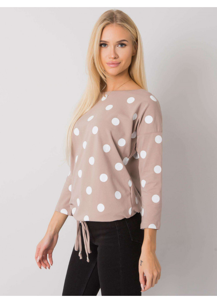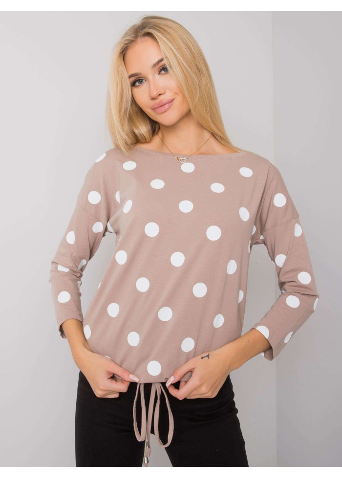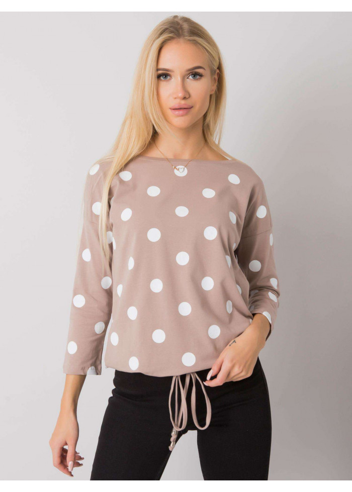 Dámske bavlnené tričko s guličkami, 7/8 rukávy, elegantný lodičkový výstrih, možnosť stiahnutia šnúrkou v spodnej časti, materiál: 90% bavlna, 10% elastan, spôsob prania: pranie v práčke na 30°c, modelka má na sebe veľkosť s. rozmery modelky: výška 176 cm, prsia 86 cm, pás 60 cm, boky 88 cm., rozmery blúzky vo veľkosti s merané naplocho: šírka v podpazuší - 52 cm, celková dĺžka - 60 cm, dĺžka rukáva - 47 cm.