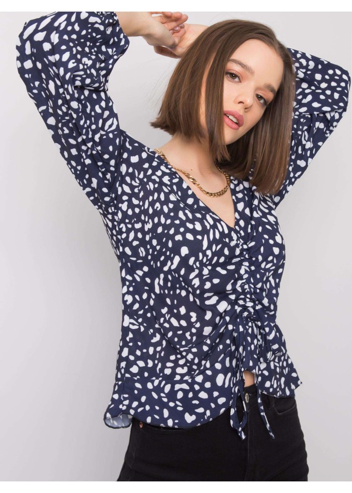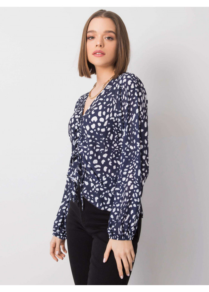 Blúzka s potlačou, blúzka s viazaním, sťahovacia guma na koncoch rukávov, spôsob prania: pranie v práčke na 30°c, materiál: 95% polyester, 5% elastan, modelka má na sebe univerzálnu veľkosť, miery modelky: výška: 175 cm, prsia: 84 cm, pás: 60 cm, boky: 90 cm, rozmer produktu meraného na plocho:, šírka pod plecami: 47 cm, celková dĺžka: 57 cm, dĺžka rukávov: 56 cm.
