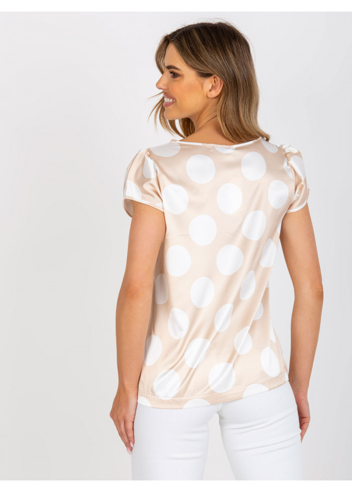 Dámska blúzka, okrúhly výstrih, krátky rukáv, ozdobné riasenie, jednoduchý voľnejší strih, spôsob prania: pranie v práčke na 30°c, materiál vrchnej vrstvy: 95% polyester, 5% elastan, modelka má na sebe veľkosť s, miery modelky: výška: 173 cm, prsia: 97 cm, pás: 67 cm, boky: 95 cm, rozmer produktu meraného na plocho, vo veľkosti s:, šírka pod plecami: 47 cm, celková dĺžka: 64 cm.