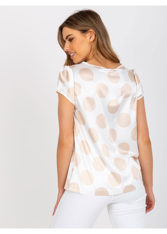 Dámska blúzka, okrúhly výstrih, krátky rukáv, ozdobné riasenie, jednoduchý voľnejší strih, spôsob prania: pranie v práčke na 30°c, materiál vrchnej vrstvy: 95% polyester, 5% elastan, modelka má na sebe veľkosť s, miery modelky: výška: 173 cm, prsia: 97 cm, pás: 67 cm, boky: 95 cm, rozmer produktu meraného na plocho, vo veľkosti s:, šírka pod plecami: 47 cm, celková dĺžka: 64 cm.