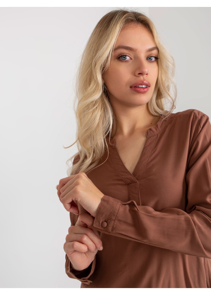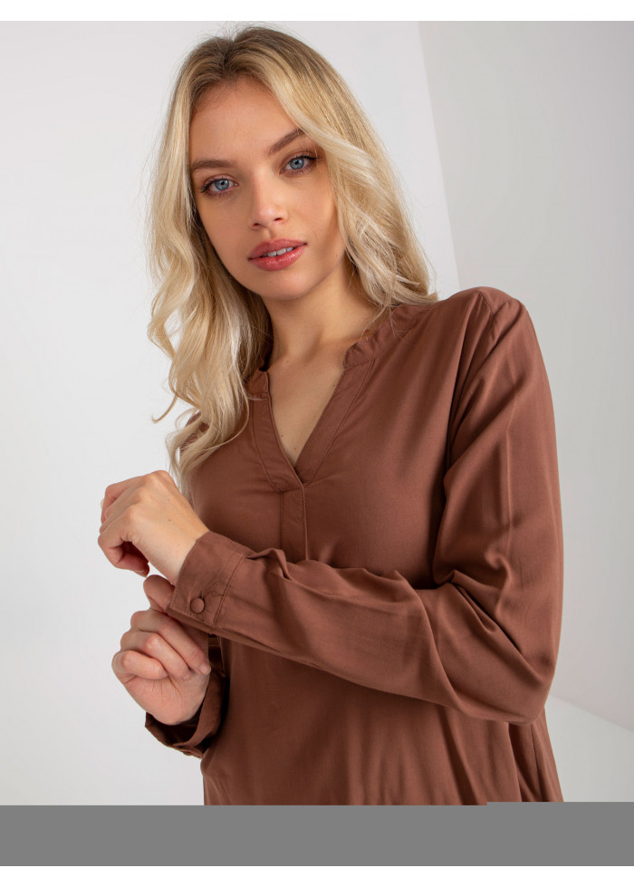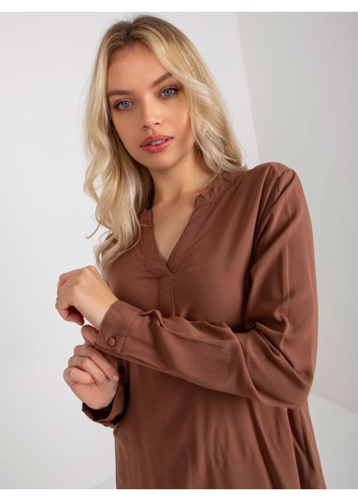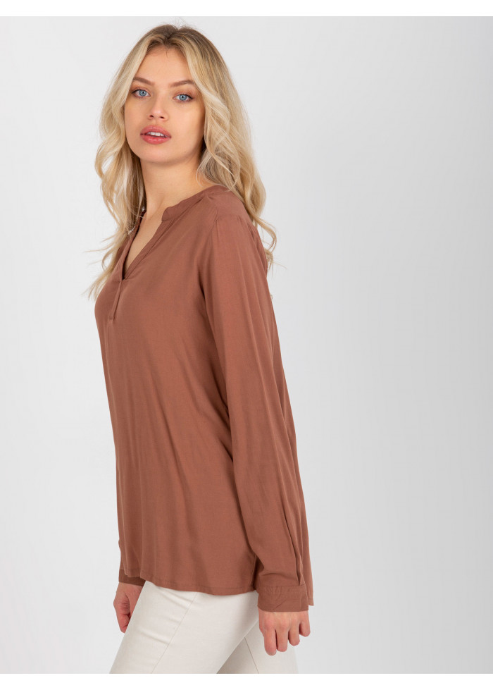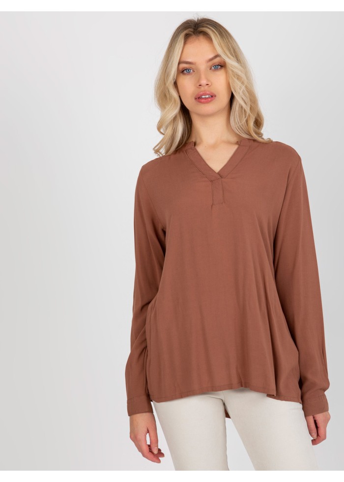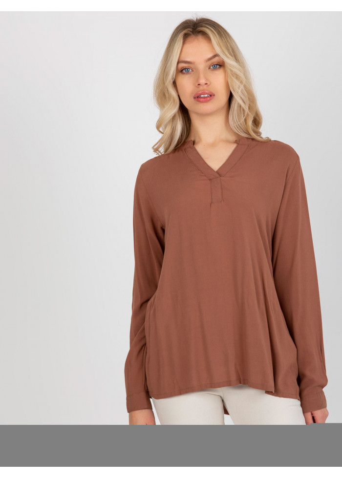 Dámska blúzka, asymetrický strih, výstrih do v, obliekanie cez hlavu, dlhý rukáv, voľnejší strih, modelka má na sebe veľkosť s, miery modelky: výška: 174 cm, prsia: 82 cm, pás: 62 cm, boky: 89 cm, rozmer produktu meraného na plocho, vo veľkosti s:, šírka pod plecami: 50 cm, dĺžka rukáva: 58 cm, celková dĺžka: vpredu: 63 cm, vzadu: 70 cm.