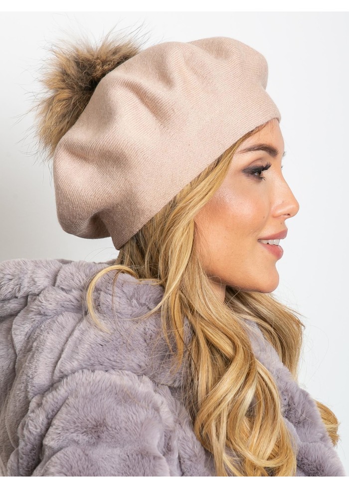 Baretka s brmbolcom, spôsob prania: pranie v práčke na 30°c, materiál: 20% kašmír, 50% akryl, 30% bavlna.