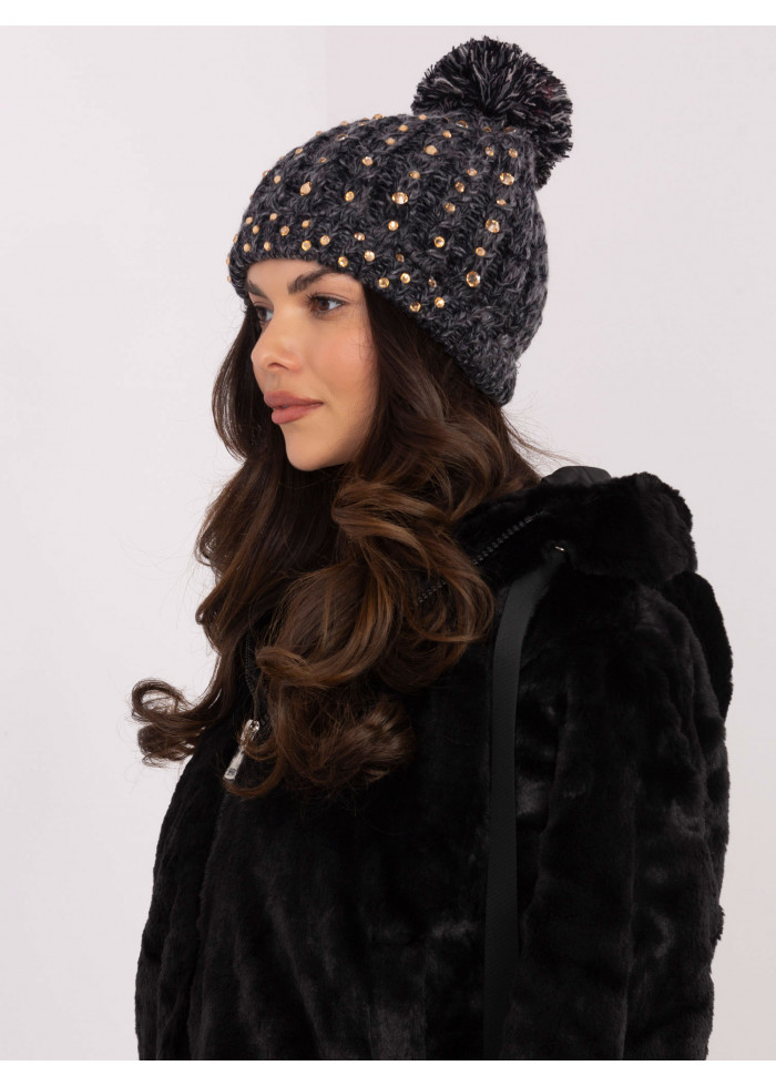 Dámska čiapka, čiapka s brmbolcom, ozdobná aplikácia na čiapke.