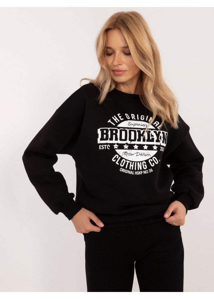 Dámska basic mikina, oversize strih, okrúhly dekolt, dlhé rukávy s lémom, ozdobná potlač vpredu, lém v spodnej časti, modelka má na sebe univerzálnu veľkosť, miery modelky: výška 173 cm, prsia 85 cm, pás 62 cm, boky 95 cm, rozmer produktu meraného na plocho:, šírka pod pazuchami - 56 cm, dĺžka rukáva - 62 cm, celková dĺžka - 68 cm.