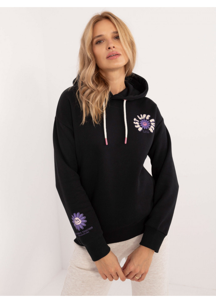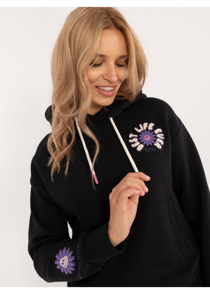 Dámska basic mikina, neodopínateľná kapucňa so sťahovacou šnúrkou, kontrastné šnúrky, dlhý rukáv, jemné sťahujúce lémy na koncoch rukávov a v spodnej časti, ozdobná potlač na rukáve, ozdobná potlač vpredu v ľavej časti a vzadu na chrbte, modelka má na sebe veľkosť s, miery modelky: výška 175 cm, prsia 90 cm, pás 66 cm, boky 94 cm, rozmer produktu meraného na plocho, vo veľkosti s:, šírka pod pazuchami - 58 cm, dĺžka rukáva - 60 cm, celková dĺžka - 59 cm.