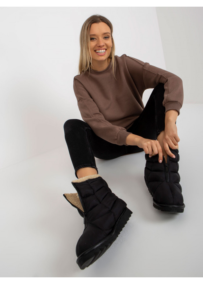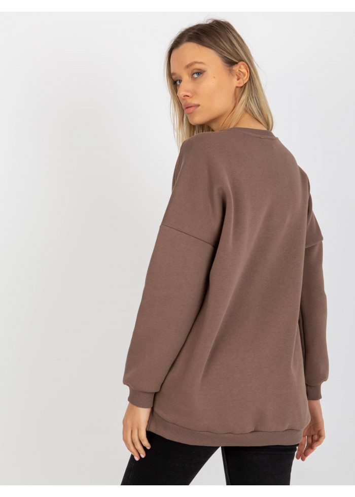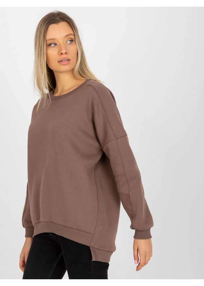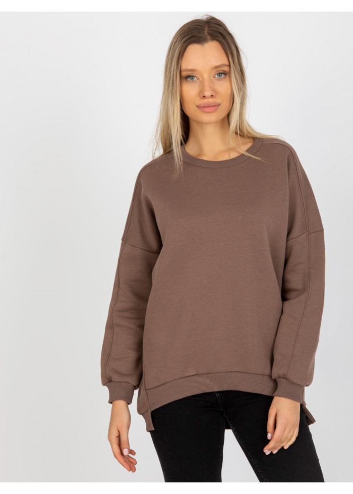 Dámska basic mikina, okrúhly dekolt pri krku, dlhé rukavy ukončené lémom, vzadu mierne predĺžená, modelka má na sebe veľkosť one size, miery modelky: výška 175 cm, prsia 90 cm, pás 66 cm, boky 94 cm, rozmer produktu meraného na plocho:, šírka v podpazuší - 64 cm, dĺžka rukáva - 57 cm, celková dĺžka - 71 cm.