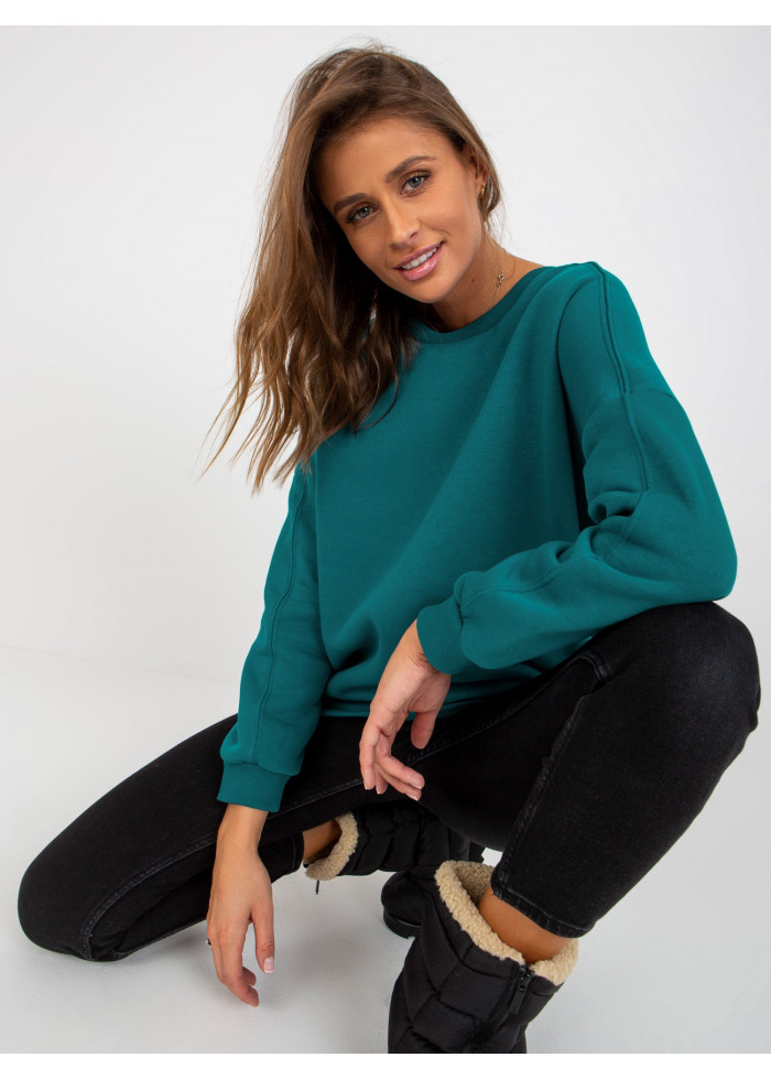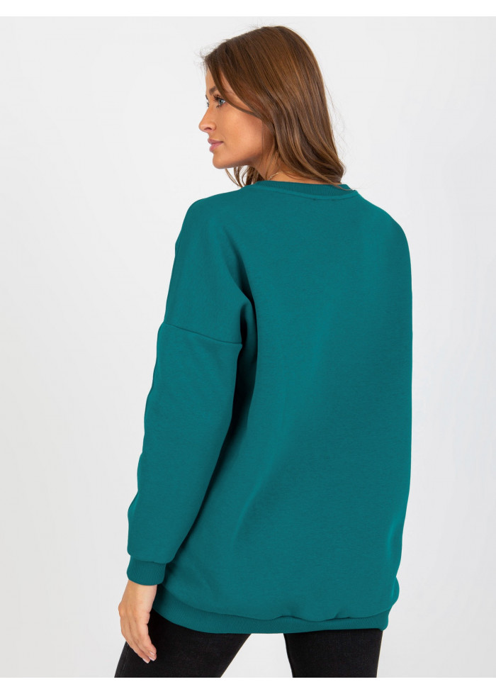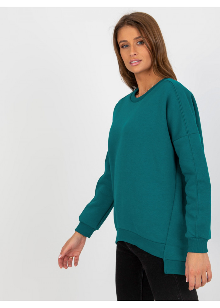 Dámska basic mikina, okrúhly dekolt pri krku, dlhé rukavy ukončené lémom, vzadu mierne predĺžená, modelka má na sebe veľkosť one size, miery modelky: výška 175 cm, prsia 90 cm, pás 66 cm, boky 94 cm, rozmer produktu meraného na plocho:, šírka v podpazuší - 64 cm, dĺžka rukáva - 57 cm, celková dĺžka - 71 cm.