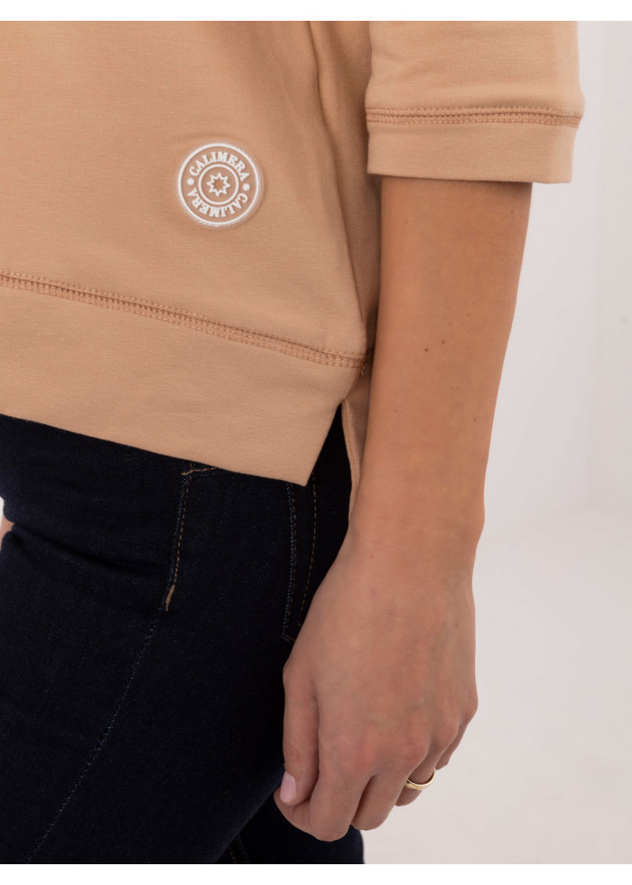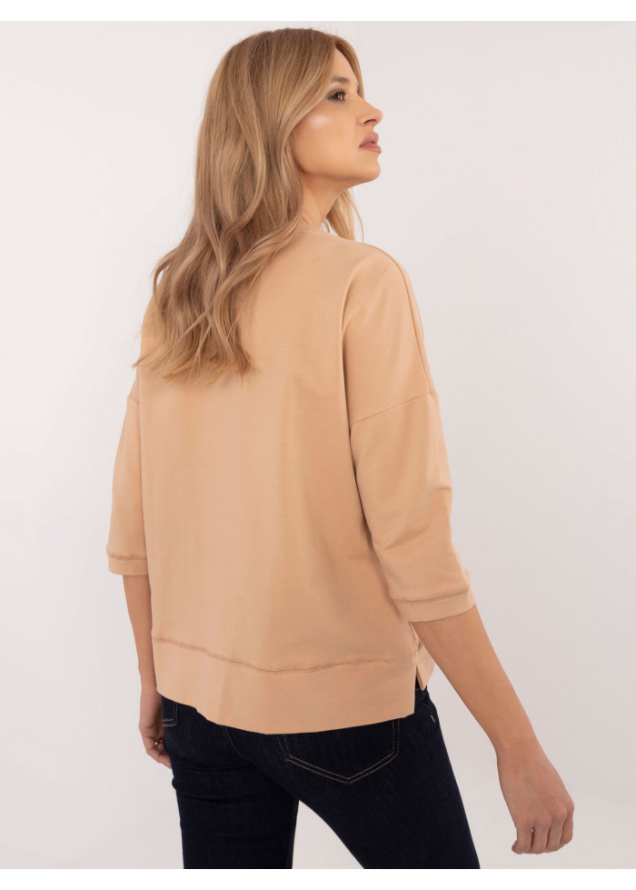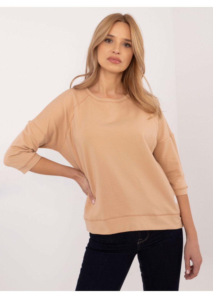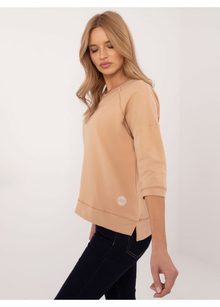 Jednofarebná dámska mikina, mikina s okrúhlym výstrihom, 3/4 rukávy, našívka v spodnej ľavej časti, široký lém v spodnej časti, modelka má na sebe veľkosť s, miery modelky: výška 175 cm, prsia 90 cm, pás 66 cm, boky 94 cm, rozmer produktu meraného na plocho, vo veľkosti s:, šírka v podpazuší - 56 cm, dĺžka blúzky - 60 cm, dĺžka rukáva - 25 cm (od švu).