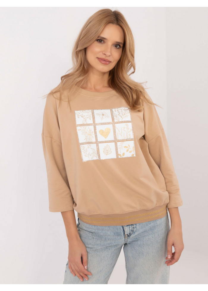 Štýlová dámska mikina s potlačou, okrúhly dekolt, potlač v prednej časti, 3/4 rukávy, lém na spodnej časti, kontrastný lém, modelka má na sebe veľkosť s, miery modelky: výška 175 cm, prsia 90 cm, pás 66 cm, boky 94 cm, rozmer produktu meraného na plocho, vo veľkosti s:, šírka v podpazuší - 64 cm, dĺžka blúzky - 63 cm, dĺžka rukáva - 31 cm (od švu).