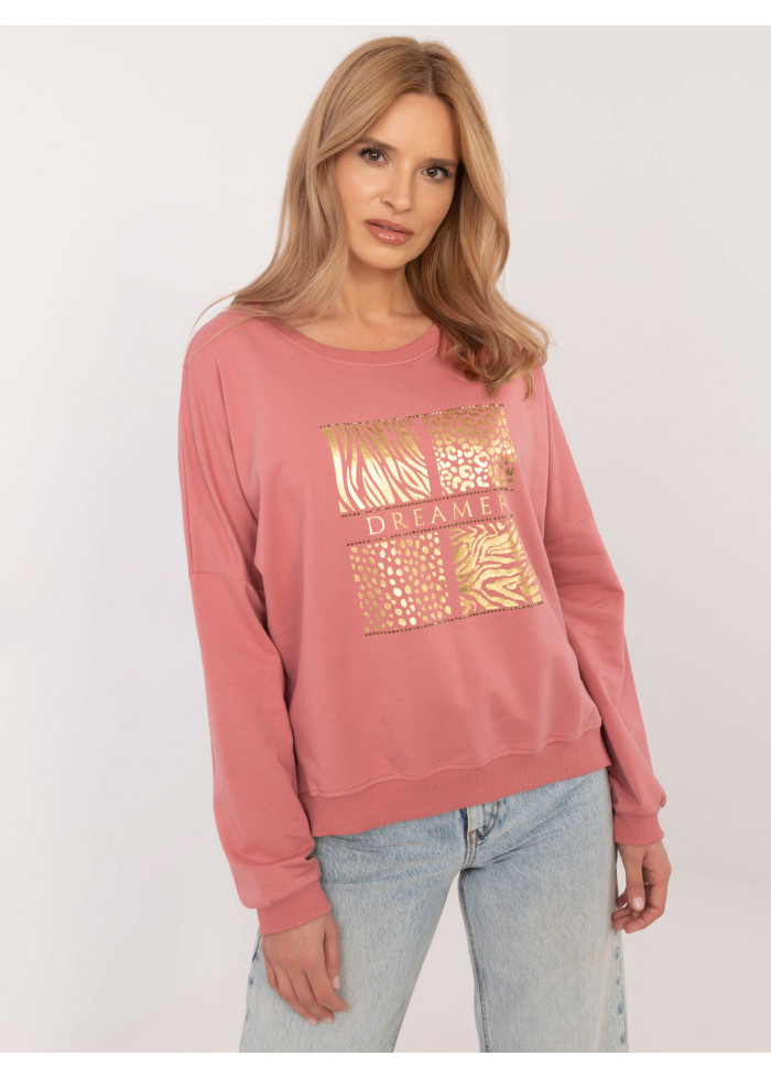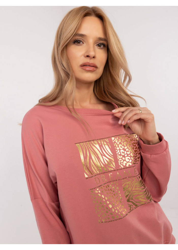 Tmavopúdrovo ružová dámska mikina s potlačou