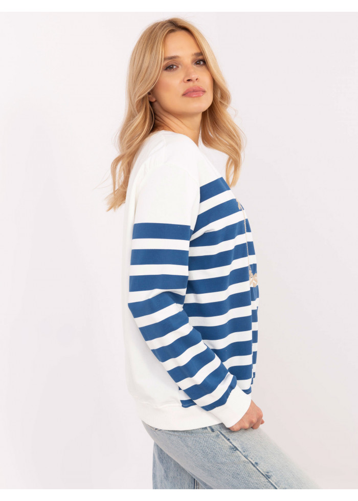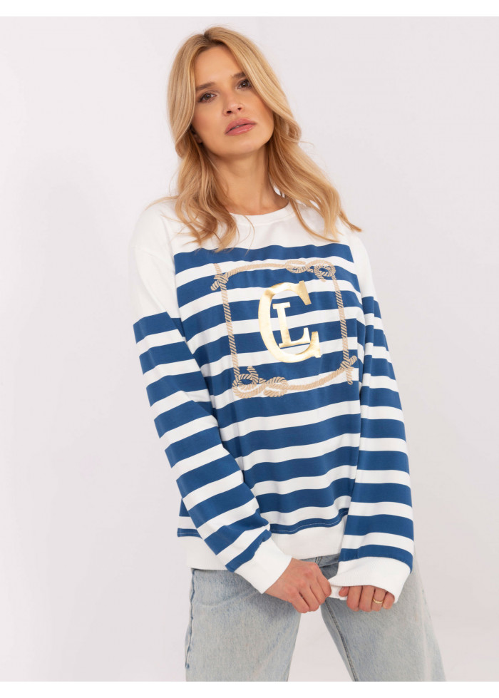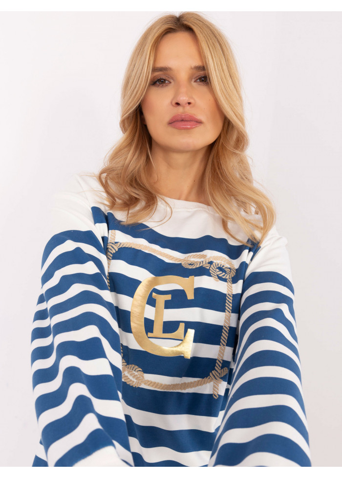 Dámska mikina s nápismi, pruhovaná mikina, okrúhly výstrih, zlatá potlač na prednej strane, dlhé rukávy s lémom, lém na spodnej časti, modelka má na sebe veľkosť s, miery modelky: výška 175 cm, prsia 90 cm, pás 66 cm, boky 94 cm, rozmer produktu meraného na plocho, vo veľkosti s:, šírka pod plecami: 60 cm, dĺžka rukáva: 43 cm (od švu), celková dĺžka: 66 cm.