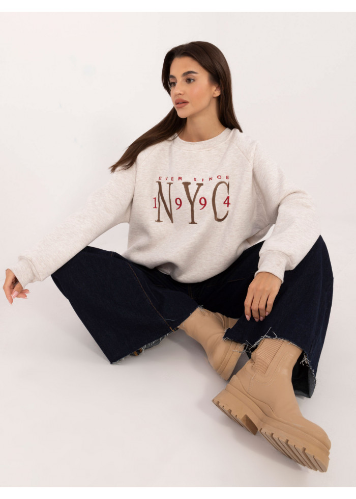 Dámska oversize mikina, okrúhly dekolt, dlhé rukávy s lémom, potlač v prednej časti, lém v spodnej časti, modelka má na sebe univerzálnu veľkosť, miery modelky: výška 176 cm, prsia 85 cm, pás: 64 cm, boky: 92 cm, rozmer produktu meraného na plocho:, šírka pod pazuchami - 70 cm, dĺžka rukáva - 64 cm, celková dĺžka - 62 cm.