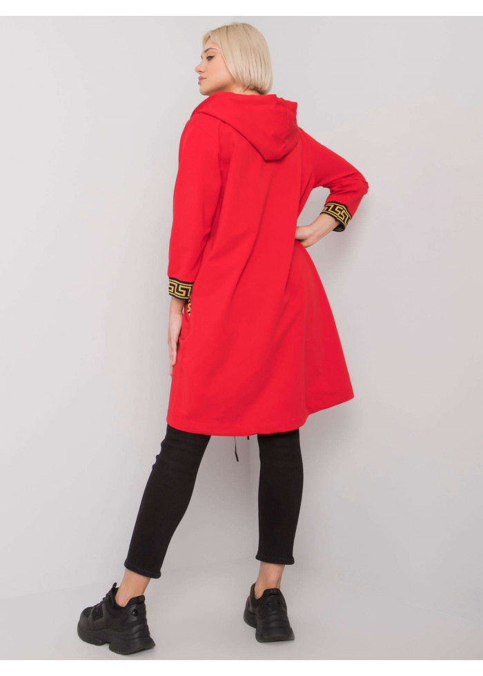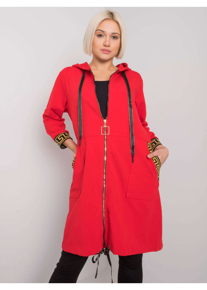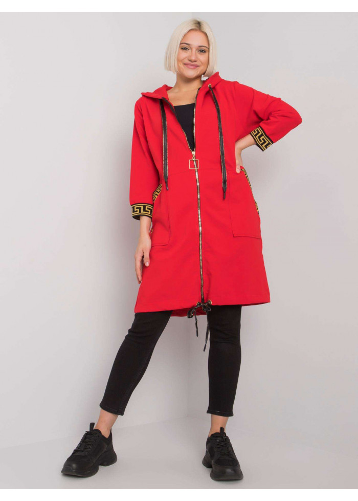 Dámska oversize mikina, jednoduchý predĺžený strih, kapucňa so sťahovacími šnúrkami, zapínanie na zips, 7/8 rukáv ukončený ozdobným lemom, 2 bočné vrecká s ozdobným lémom, možnosť stiahnutia šnúrkou v spodnej časti, materiál: 90% bavlna, 10% elastan, spôsob prania: pranie v práčke na 30°c, modelka má na sebe veľkosť s/m, miery modelky: výška 175 cm, prsia 84 cm, pás 65 cm, boky 92 cm., rozmer produktu meraného na plocho, vo veľkosti s/m:, šírka v podpazuší - 52 cm, celková dĺžka - 93 cm, dĺžka rukáva - 48 cm.