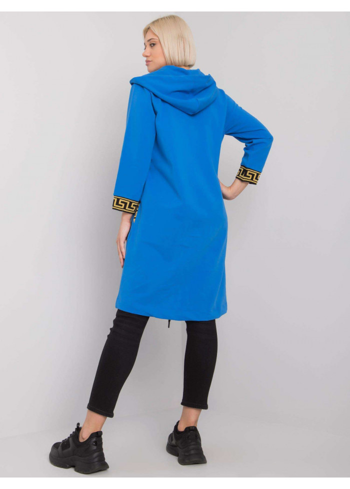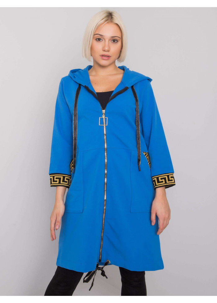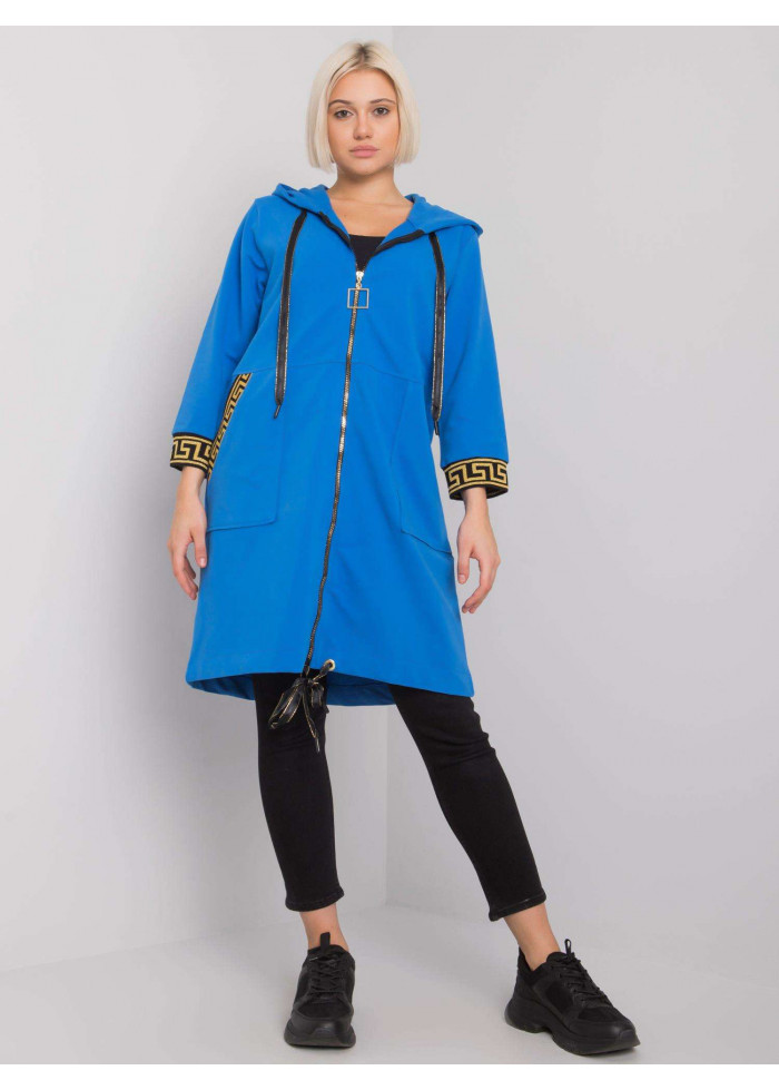 Dámska oversize mikina, jednoduchý predĺžený strih, kapucňa so sťahovacími šnúrkami, zapínanie na zips, 7/8 rukáv ukončený ozdobným lemom, 2 bočné vrecká s ozdobným lémom, možnosť stiahnutia šnúrkou v spodnej časti, materiál: 90% bavlna, 10% elastan, spôsob prania: pranie v práčke na 30°c, modelka má na sebe veľkosť s/m, miery modelky: výška 175 cm, prsia 84 cm, pás 65 cm, boky 92 cm., rozmer produktu meraného na plocho, vo veľkosti s/m:, šírka v podpazuší - 52 cm, celková dĺžka - 93 cm, dĺžka rukáva - 48 cm.