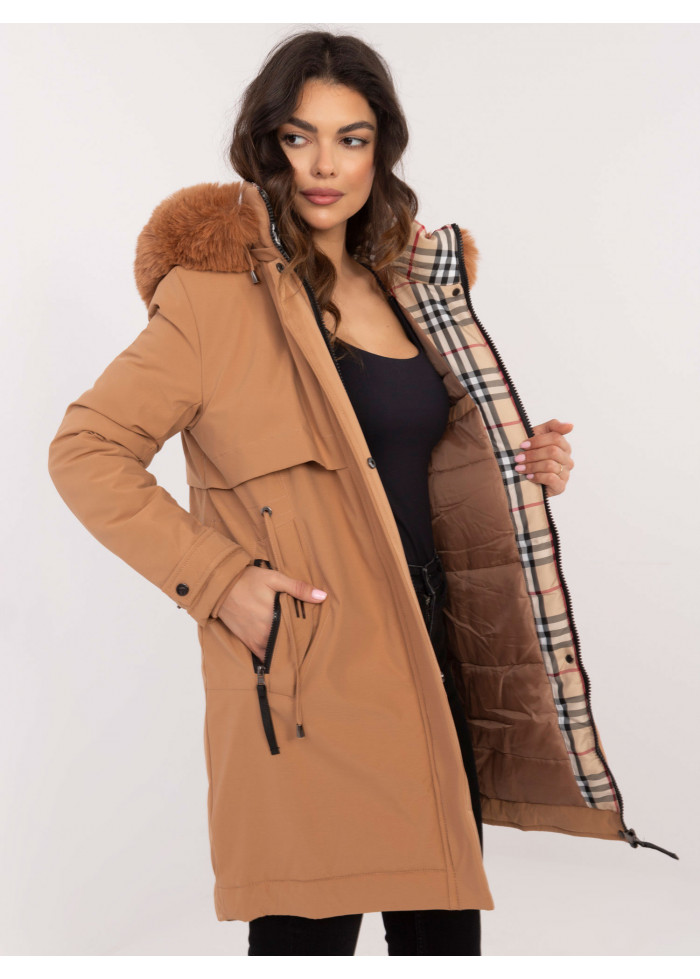 Dámska zimná parka s kožušinou, dlžka nad kolena, ozdobné šnúrky na kapucni, zapínanie na skrytý zips, možnosť stiahnutia v páse šnúrkou, 2 vrecká na zips, modelka má na sebe veľkosť s, miery modelky: výška 173 cm, prsia 85 cm, pás 62 cm, boky 95 cm, rozmer produktu meraného na plocho, vo veľkosti s:, šírka v podpazuší - 54 cm, celková dĺžka - 93 cm, dĺžka rukáva - 60 cm.