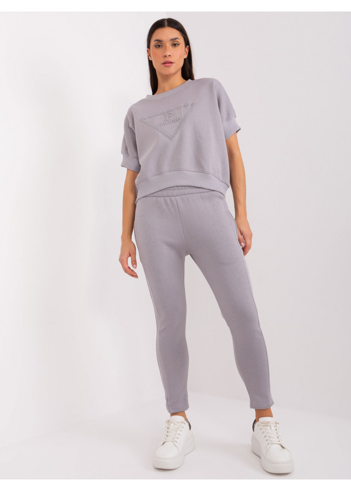 Štýlová dámska tepláková súprava, basic mikina s potlačou, okrúhly výstrih, krátky rukáv ukončený ozdobným lémom, vzadu mierne predĺžená, dámske tepláky s vyšším pásom, široká guma v páse, 2 bočné vrecká, modelka má na sebe univerzálnu veľkosť, miery modelky: výška: 172 cm, prsia: 83 cm, pás: 63 c, boky:91 cm, rozmer produktu meraného na plocho:, šírka mikiny pod pazuchami - 72 cm, dĺžka mikiny - 56 cm, šírka nohavíc v páse - 38 cm, výška v páse - 34 cm, dĺžka nohavíc - 97 cm.