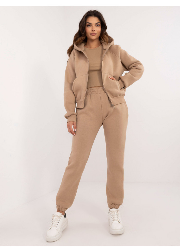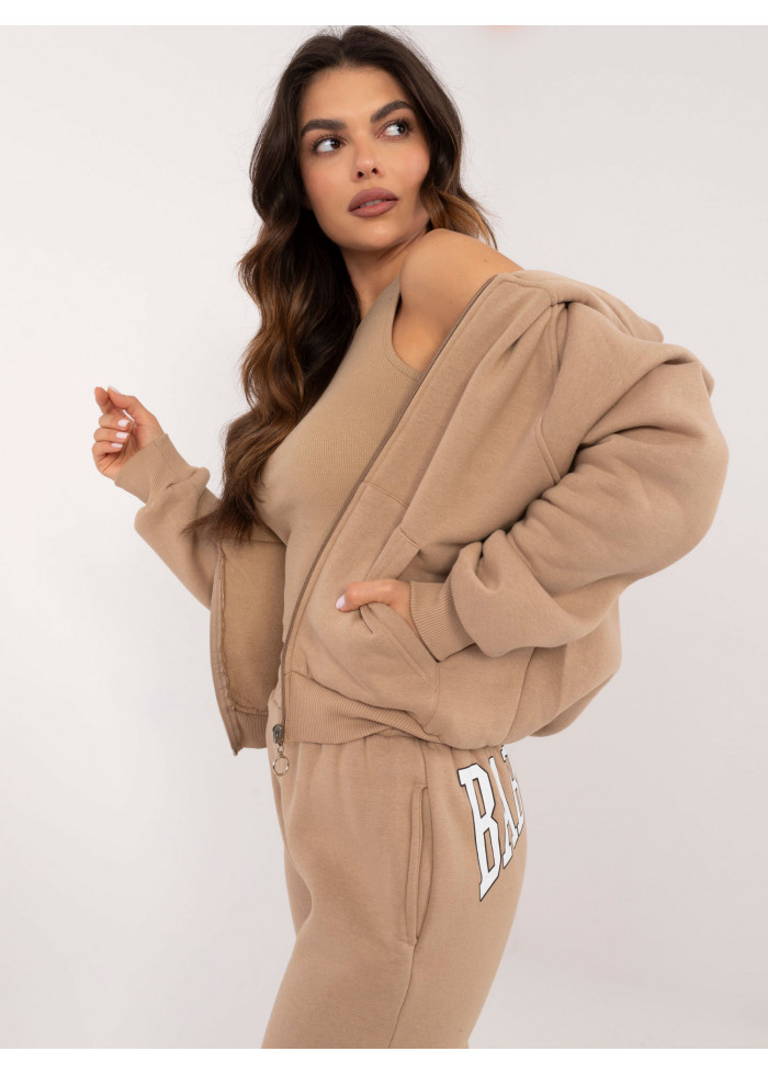 Tepláková súprava 3-kombinácia, oteplená mikina s kapucňou, zapínanie na zips, dlhé rukavy ukončené lémom, dámsky top bez rukávov, crop top tričko, okrúhly výstrih, dámske tepláky s potlačou, sťahovacia guma v páse, 2 bočné vrecká, sťahujúca guma v spodnej časti, modelka má na sebe univerzálnu veľkosť, miery modelky: výška 173 cm, prsia 85 cm, pás 62 cm, boky 95 cm, rozmer produktu meraného na plocho:, šírka pod pazuchami - 58 cm, dĺžka mikiny - 58 cm, dĺžka rukáva - 67 cm, šírka topu pod pazuchami - 42 cm, dĺžka topu - 50 cm, šírka nohavíc v páse - 33 cm, dĺžka nohavíc - 98 cm.