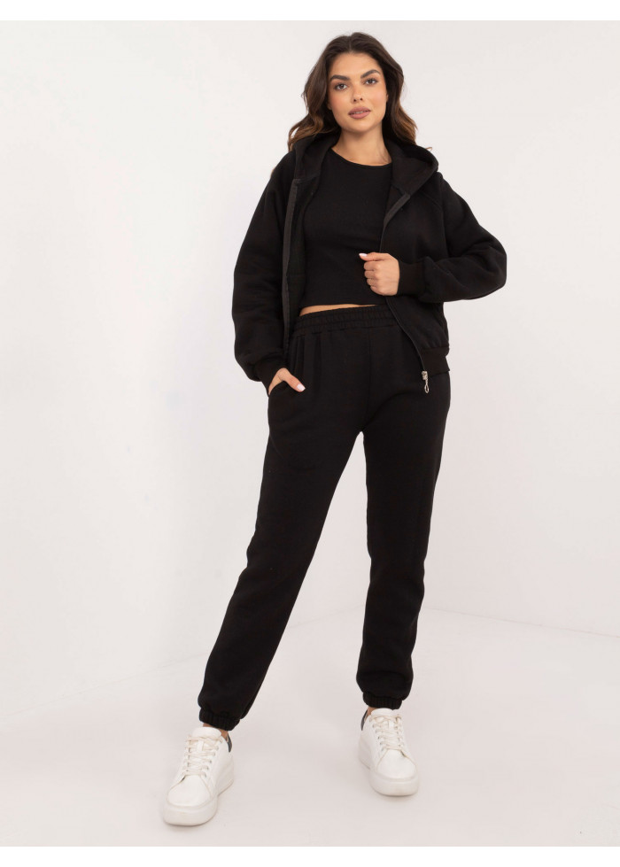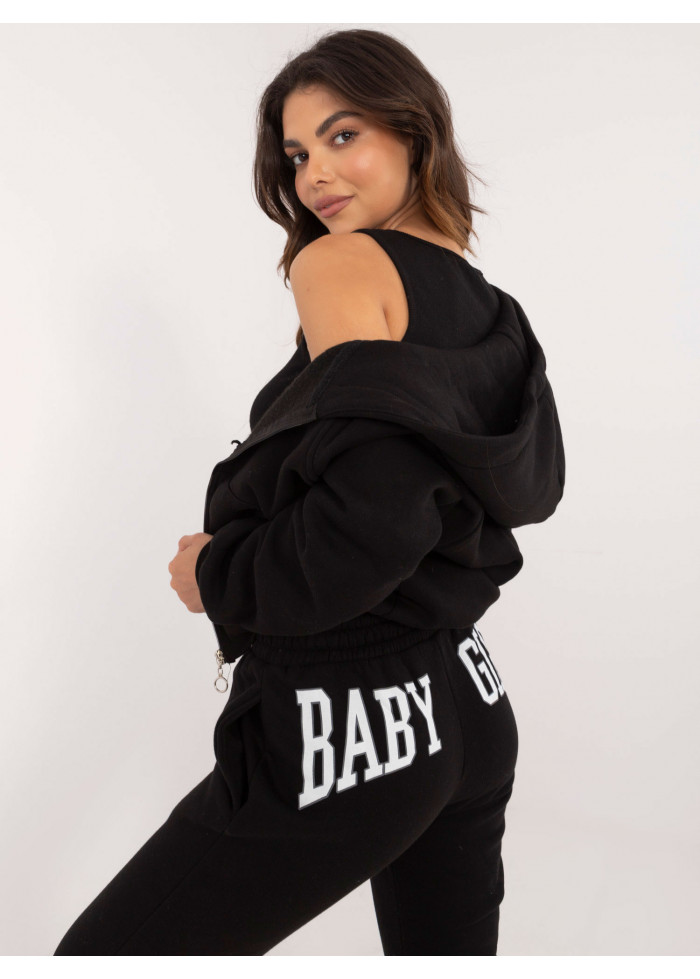 Tepláková súprava 3-kombinácia, oteplená mikina s kapucňou, zapínanie na zips, dlhé rukavy ukončené lémom, dámsky top bez rukávov, crop top tričko, okrúhly výstrih, dámske tepláky s potlačou, sťahovacia guma v páse, 2 bočné vrecká, sťahujúca guma v spodnej časti, modelka má na sebe univerzálnu veľkosť, miery modelky: výška 173 cm, prsia 85 cm, pás 62 cm, boky 95 cm, rozmer produktu meraného na plocho:, šírka pod pazuchami - 58 cm, dĺžka mikiny - 58 cm, dĺžka rukáva - 67 cm, šírka topu pod pazuchami - 42 cm, dĺžka topu - 50 cm, šírka nohavíc v páse - 33 cm, dĺžka nohavíc - 98 cm.