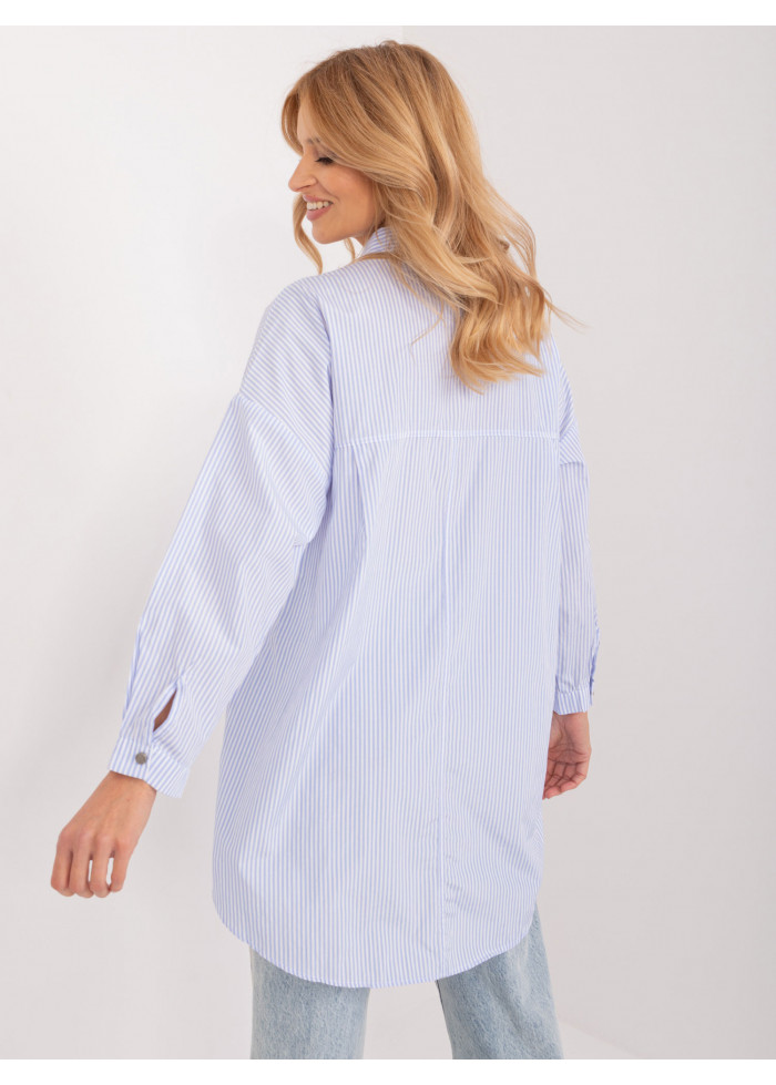 Bavlnená dámska košeľa s golierom, oversize strih, pruhovaný dizajn, zapínanie na gombíky, 2 vrecká v prednej časti, dlhé rukávy na gombíky, vzadu mierne predĺžená, modelka má na sebe veľkosť s, miery modelky: výška 175 cm, prsia 90 cm, pás 66 cm, boky 94 cm, rozmer produktu meraného na plocho, vo veľkosti s:, šírka pod pazuchami - 62 cm, celková dĺžka - 106 cm, dĺžka rukáva - 57 cm.