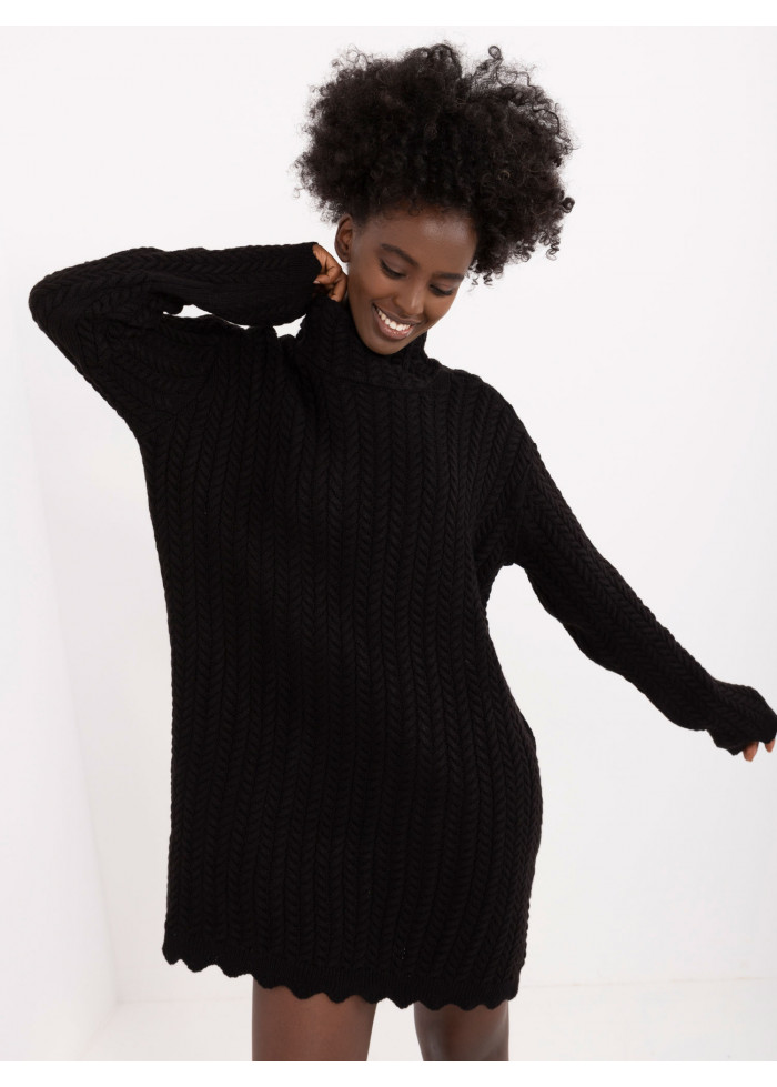 Bavlnené dámske šaty s rolákom, oversize strih, dlžka nad kolena, rukávy ukončené ozdobným lémom, ozdobný lém v spodnej časti, modelka má na sebe univerzálnu veľkosť, miery modelky: výška: 168 cm, prsia: 82 cm, pás: 62 cm, boky: 93 cm, rozmer produktu meraného na plocho:, šírka pod pazuchami - 58 cm, dĺžka rukáva - 61 cm, celková dĺžka - 84 cm.