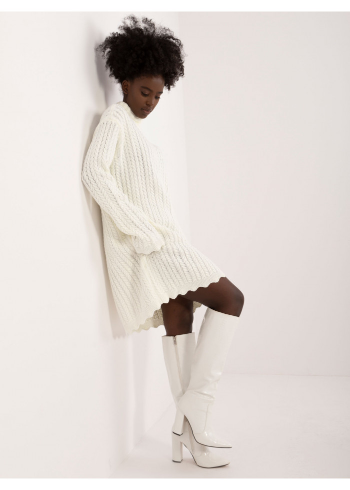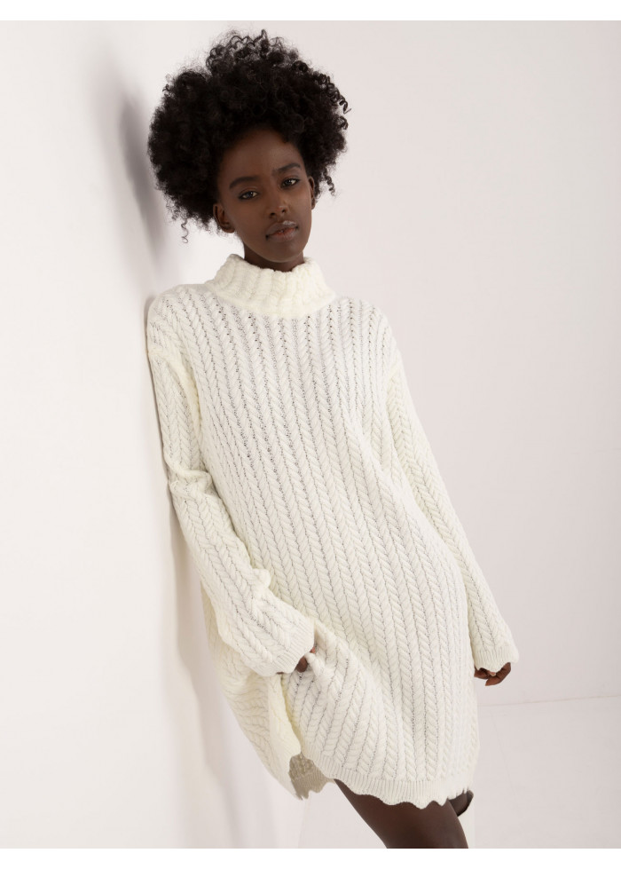 Bavlnené dámske šaty s rolákom, oversize strih, dlžka nad kolena, rukávy ukončené ozdobným lémom, ozdobný lém v spodnej časti, modelka má na sebe univerzálnu veľkosť, miery modelky: výška: 168 cm, prsia: 82 cm, pás: 62 cm, boky: 93 cm, rozmer produktu meraného na plocho:, šírka pod pazuchami - 58 cm, dĺžka rukáva - 61 cm, celková dĺžka - 84 cm.