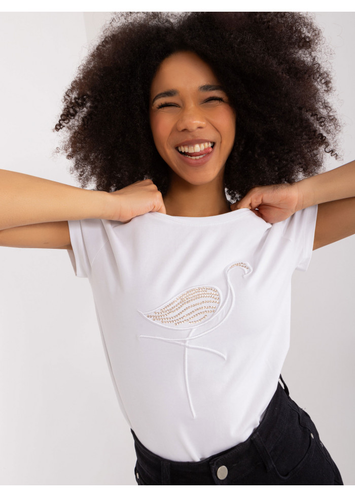 Dámske tričko s krátkym rukávom, voľnejší strih, okrúhly dekolt, vyšívka v prednej časti, modelka má na sebe veľkosť s/m, miery modelky: výška: 170 cm,prsia: 86 cm, pás: 65 cm, boky: 92 cm, rozmer produktu meraného na plocho, vo veľkosti s/m:, šírka pod pazuchami - 48 cm, celková dĺžka - 62 cm.
