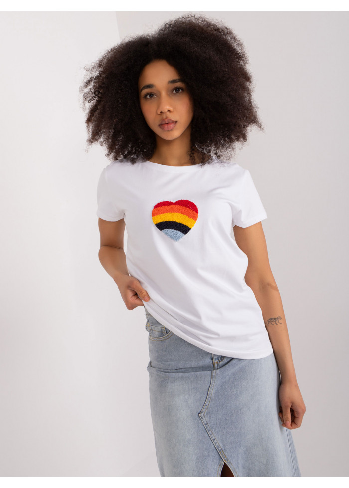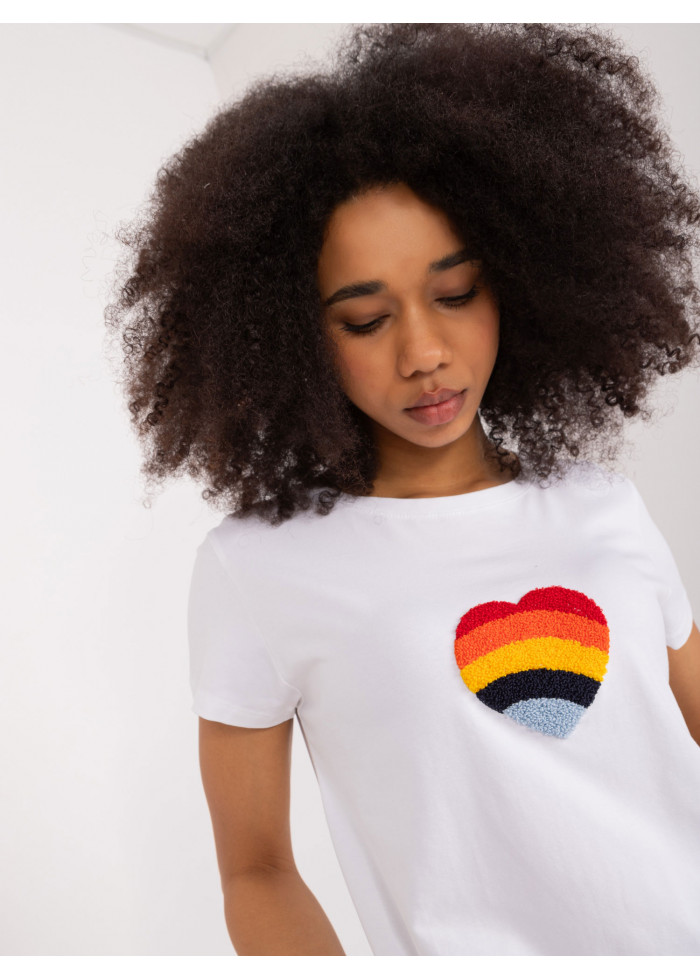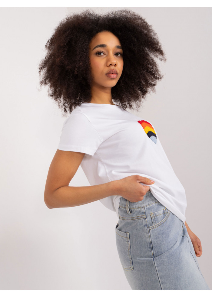 Dámske tričko s krátkym rukávom, voľnejší strih, okrúhly dekolt vpredu, ozdobná nášivka v prednej časti, modelka má na sebe veľkosť s/m, miery modelky: výška: 170 cm,prsia: 86 cm, pás: 65 cm, boky: 92 cm, rozmer produktu meraného na plocho, vo veľkosti s/m:, šírka pod pazuchami - 46 cm, celková dĺžka - 62 cm.