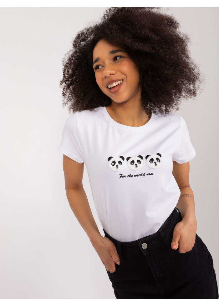 Dámske tričko s krátkym rukávom, okrúhly dekolt pri krku, ozdobná potlač vpredu, modelka má na sebe veľkosť s/m, miery modelky: výška: 170 cm,prsia: 86 cm, pás: 65 cm, boky: 92 cm, rozmer produktu meraného na plocho, vo veľkosti s/m:, šírka pod pazuchami - 48 cm, celková dĺžka - 63 cm.